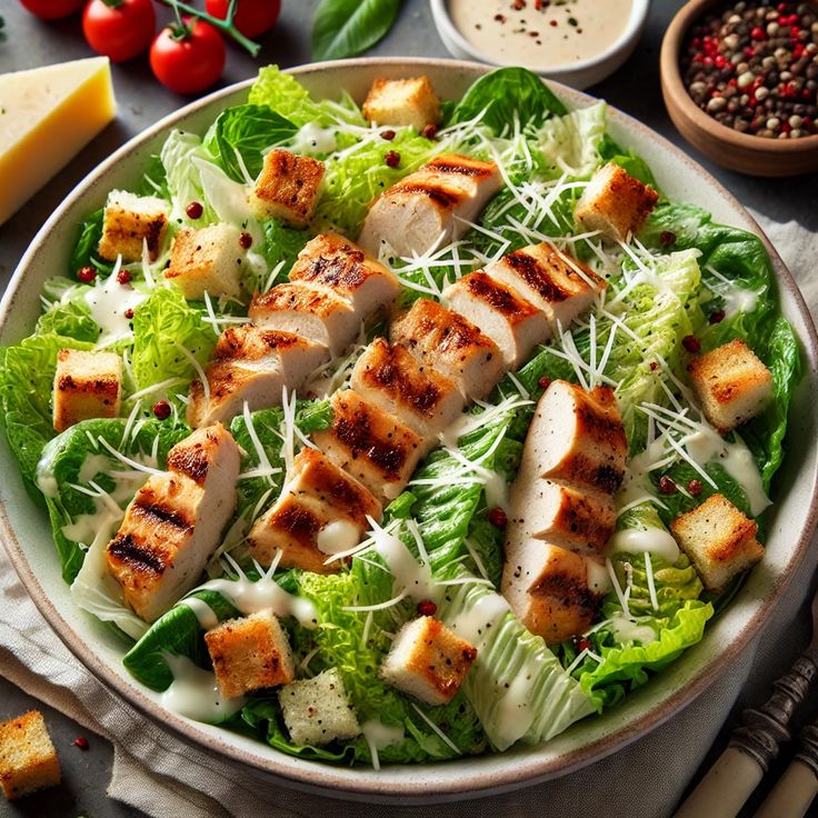 Tradicional mezcla de lechuga, queso parmesano, crotones, 200gr de pollo a la plancha y aderezo caesar.