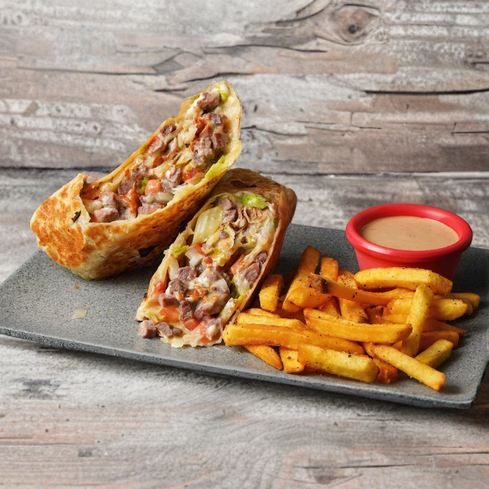 Elaborada con una sabrosa porción de arrachera 200 gr, queso, lechuga fresca y aderezo chipotle, acompañada con papas a la francesa.