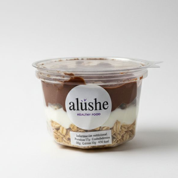 17G DE PROTEINA Avena trasnochada por 12 hrs, queso cottage light,yogur griego extracremoso, chocolate turin sin azucar y nuez.