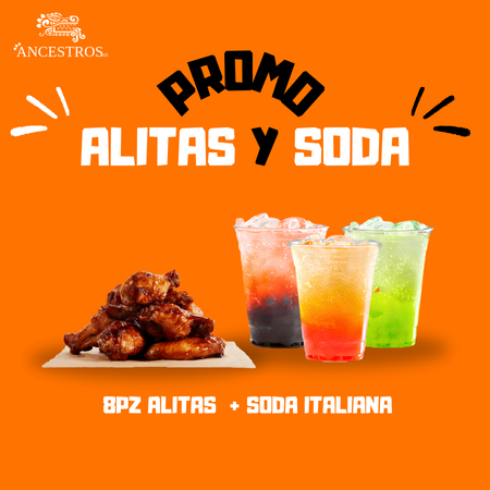 SODAS ITALIANAS*1 + Orden de 8 Alitas*1