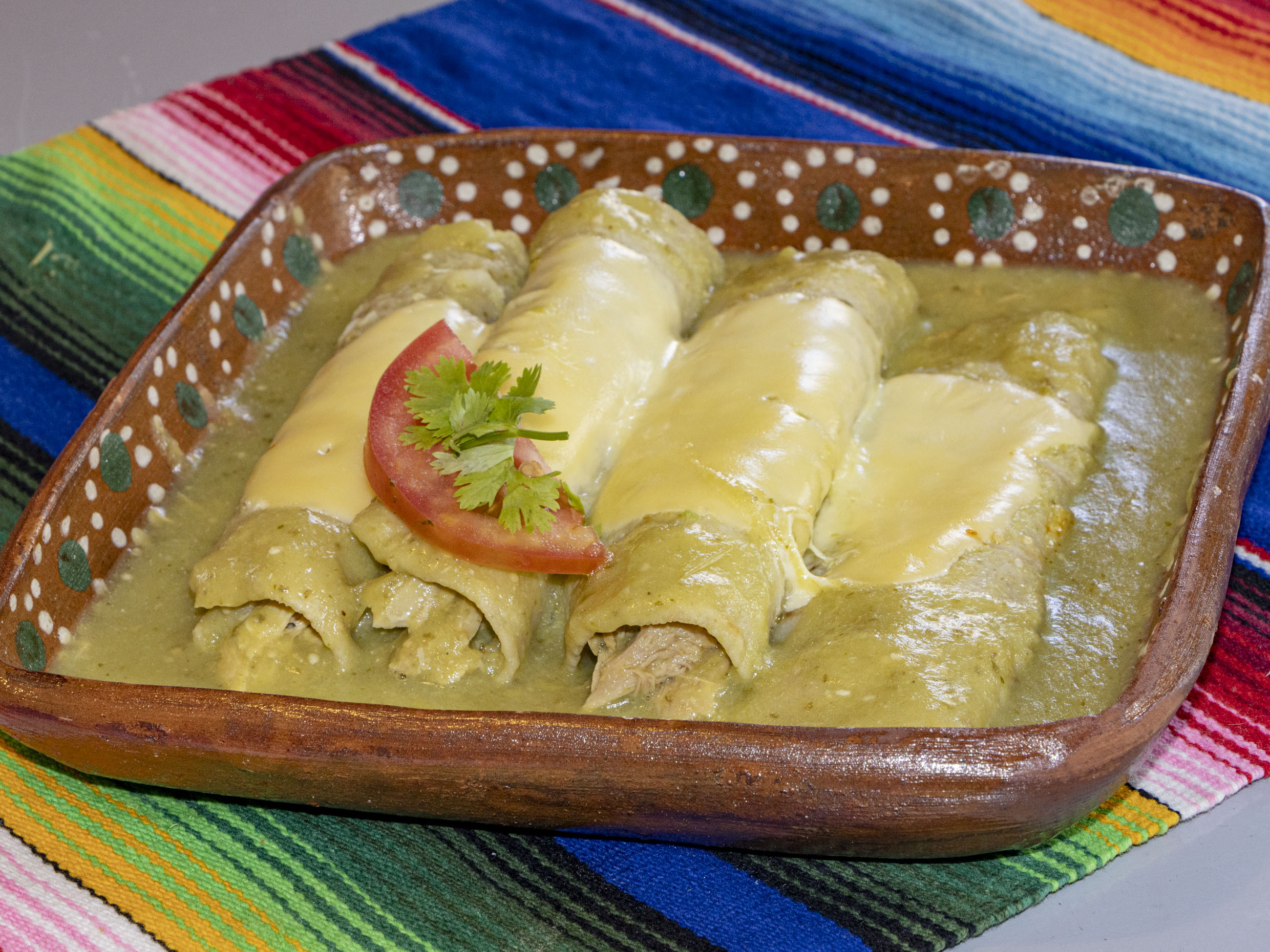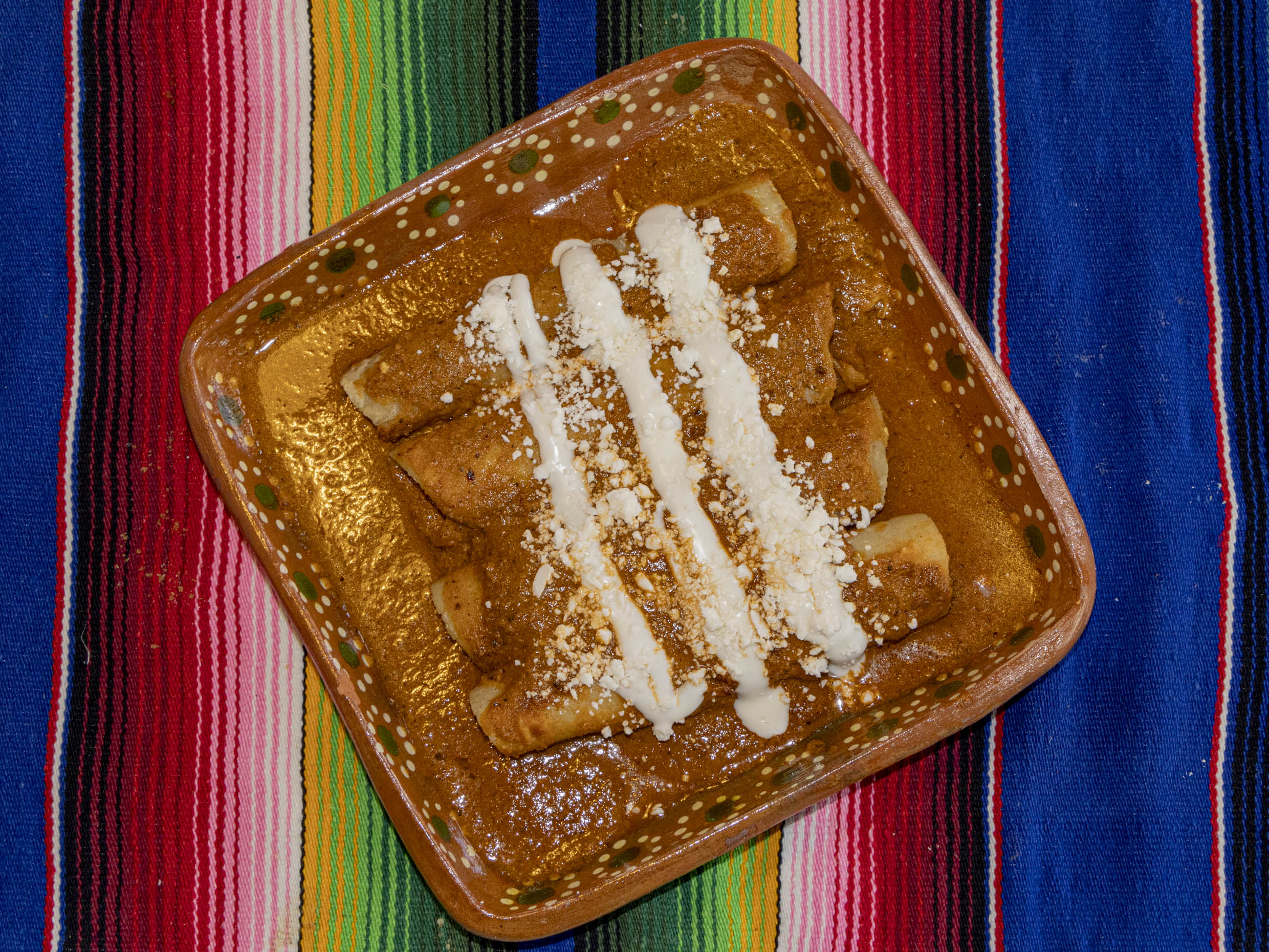 4 Rellenas de pollo y bañadas en mole o pipián, según prefieras.