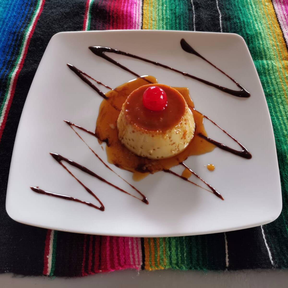 Dulce flan napolitano casero, bañado con azúcar dorada.