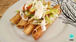flautas, salsa verde un poco, lechuga, crema, queso y salsa habanera