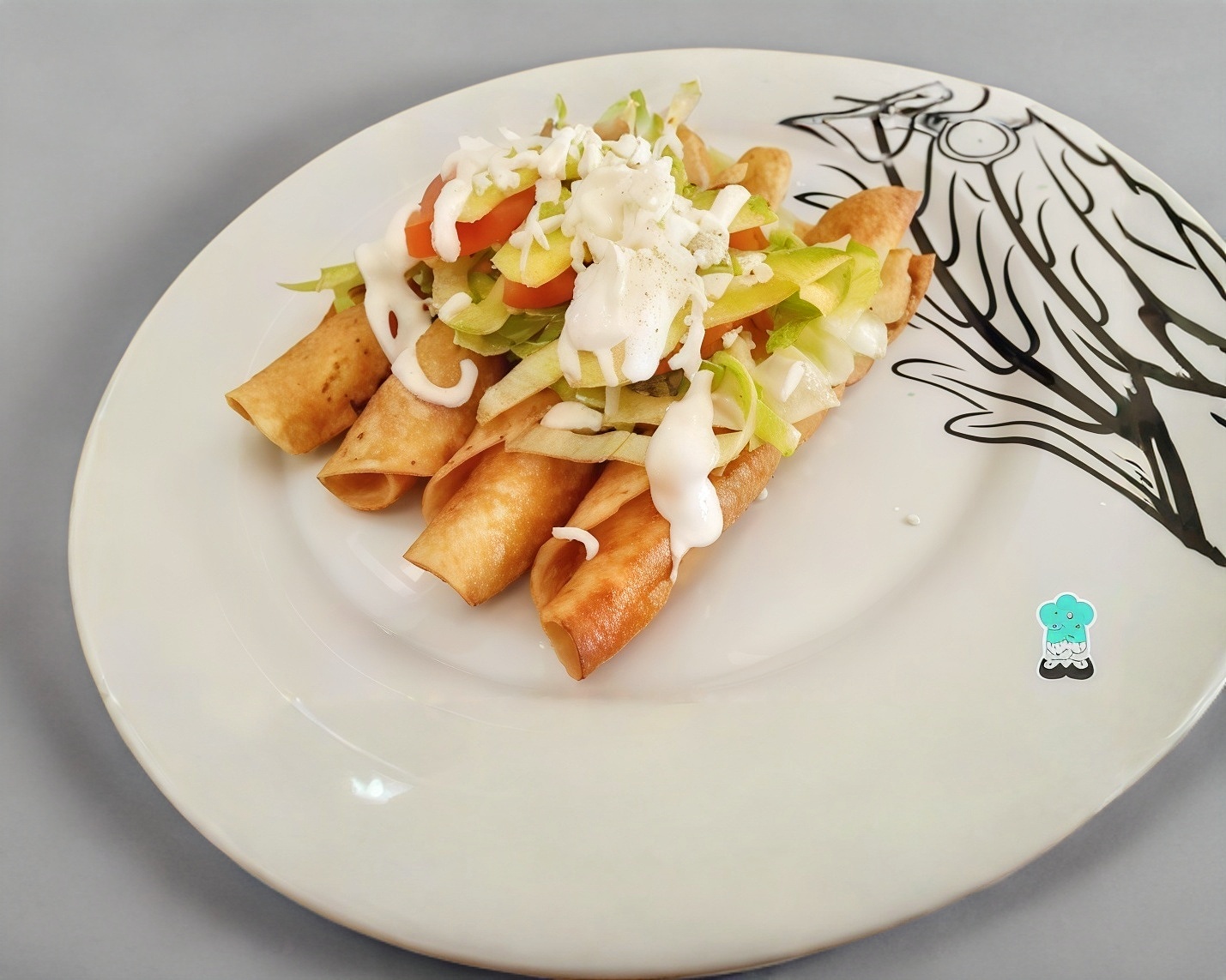 Flautas de Pollo son 4 piezas*1 + Agua fresca del dia*1