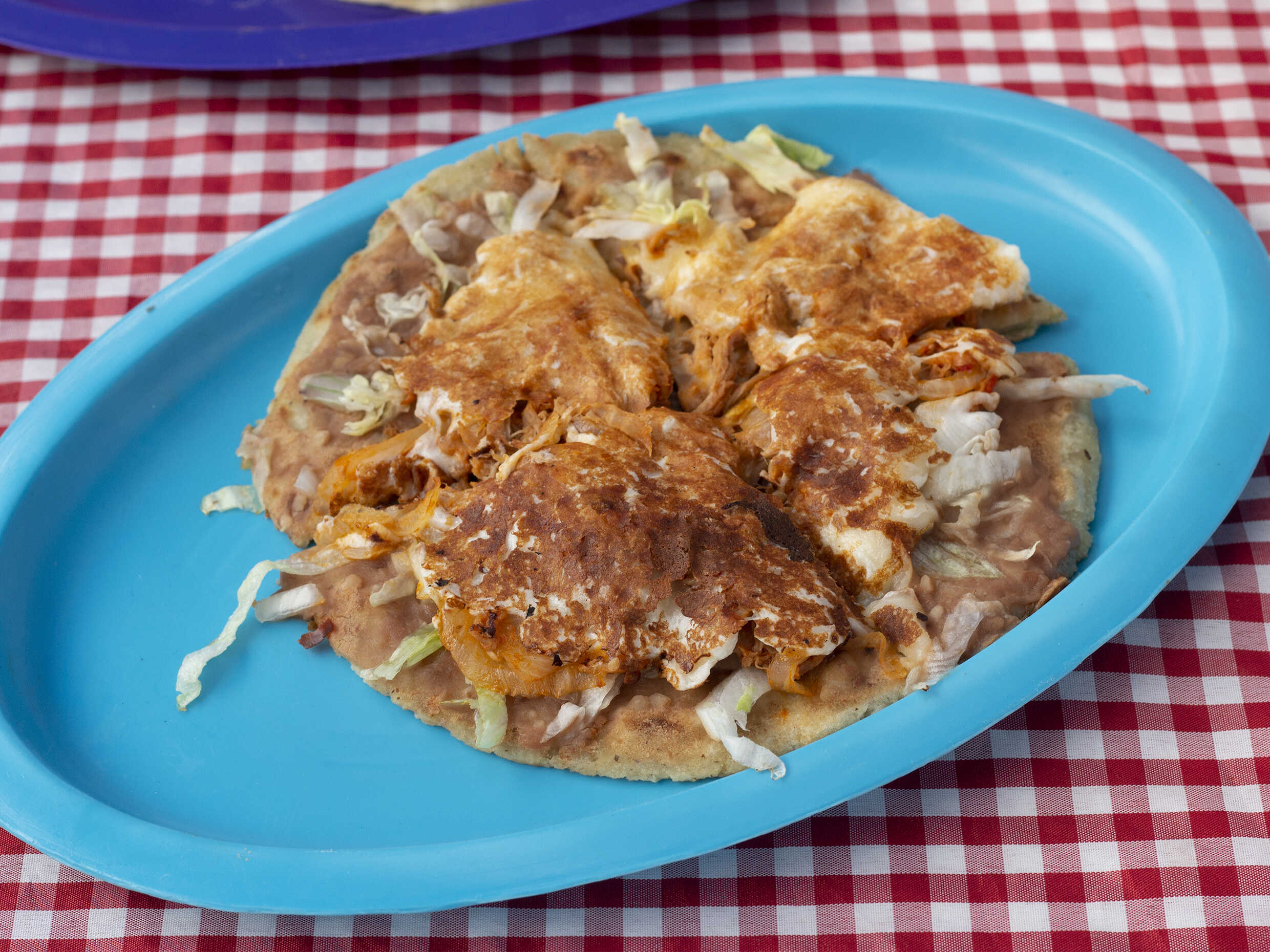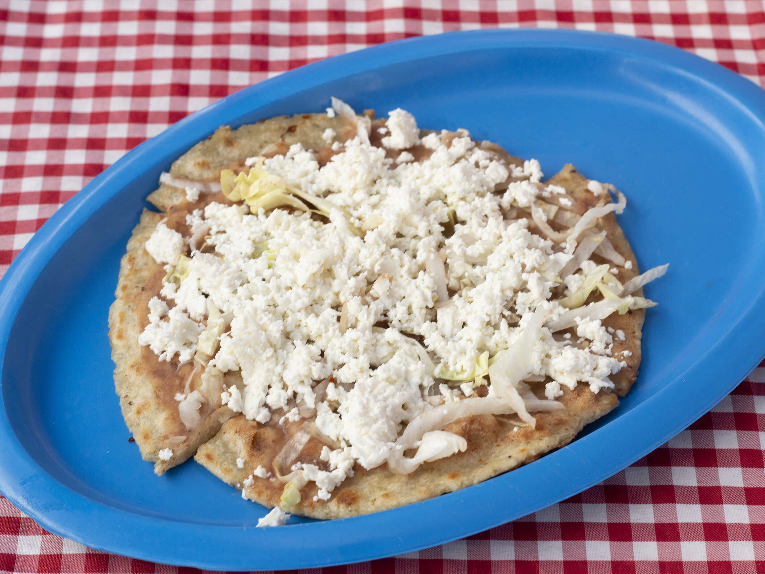 TORTILLA DE MAÍZ,FRIJOLES,LECHUGA,CEBOLLA,GUISADO Y QUESO OAXACA