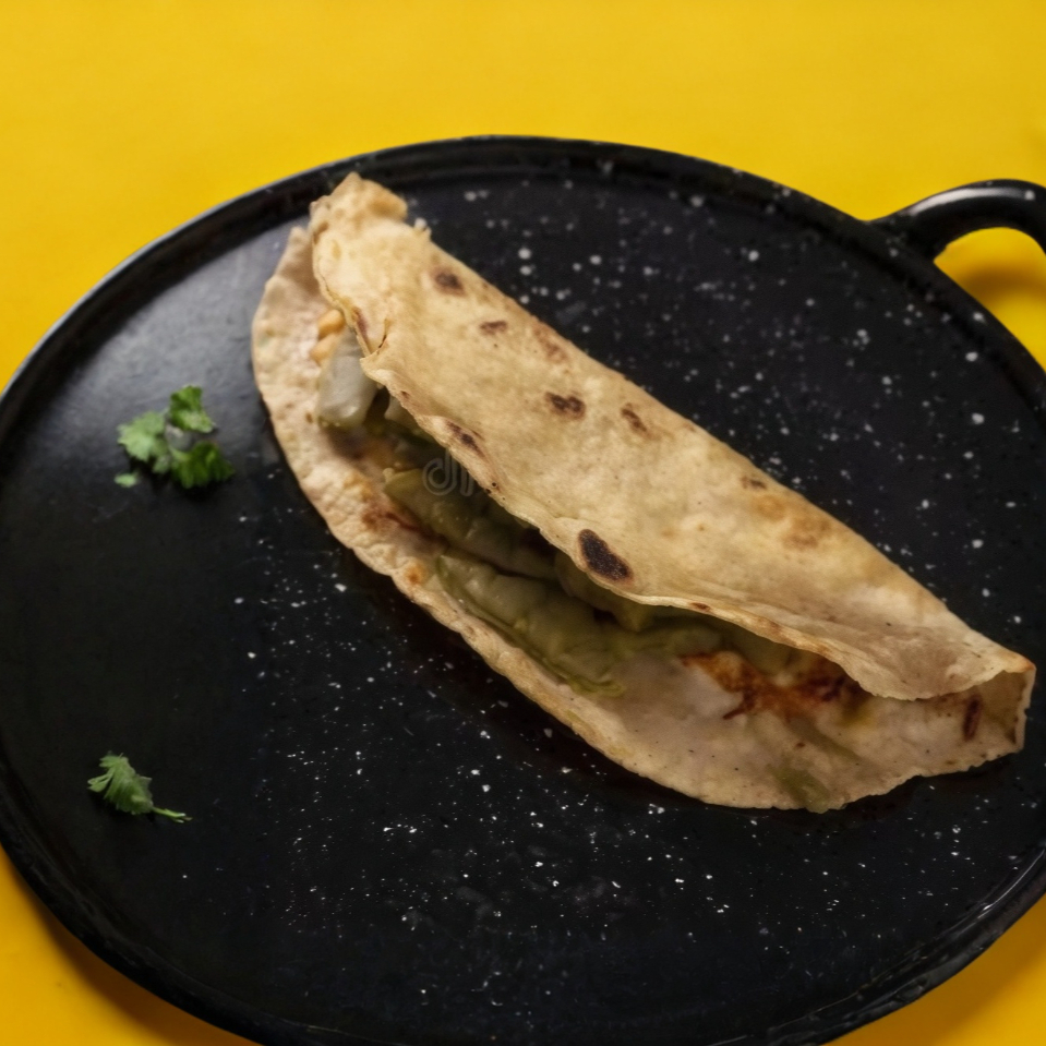 Una Quesadilla de maíz con diferentes guisados.