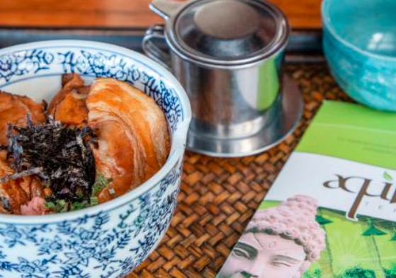 Receta japonesa de carne de cerdo asada sobre cama de arroz blanco.