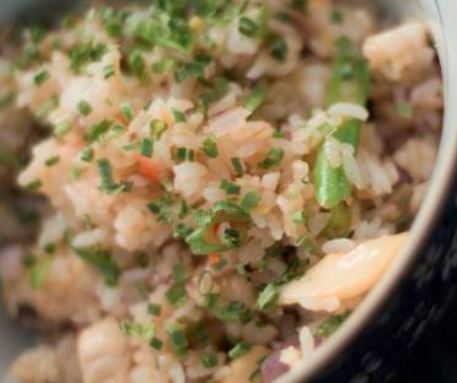 Receta vegetariana de arroz blanco con vegetales y un toque dulce.