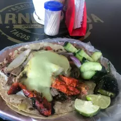 Platillo personal: 1 taco con carne a elegir entre bistec, chorizo, arrachera, pollo, camarón o combinados. Elige tu proteína y complementos al gusto.