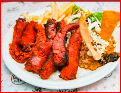 Bistec, pollo y chorizo.