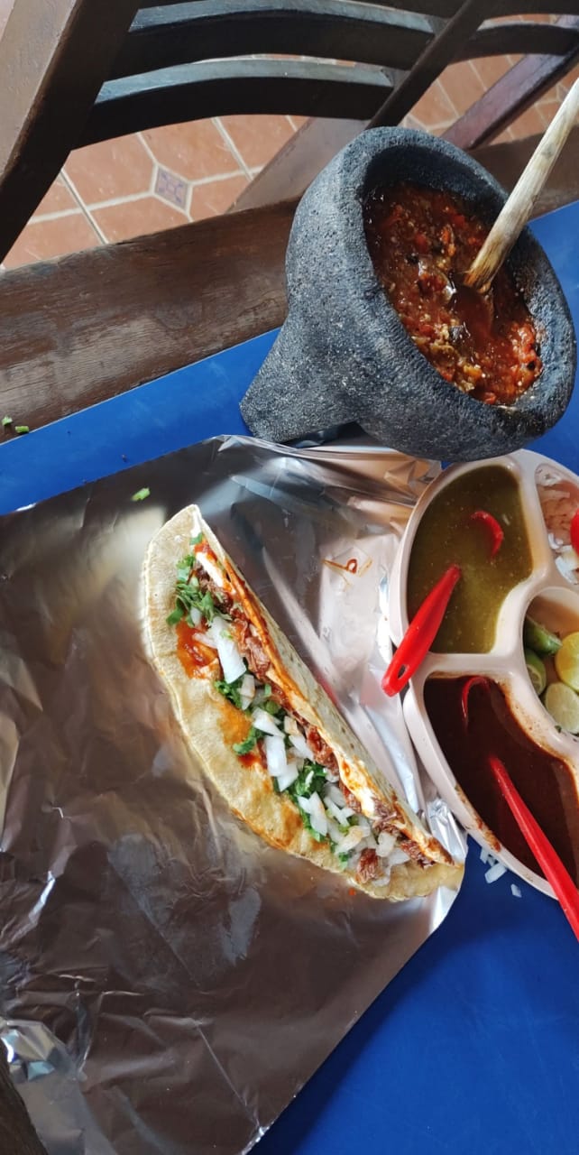 1 kg De birria de res, 1 kg de tortillas, 1 litro de consomé, salsa y verdura.