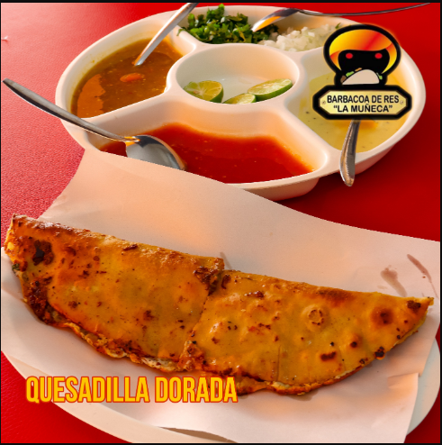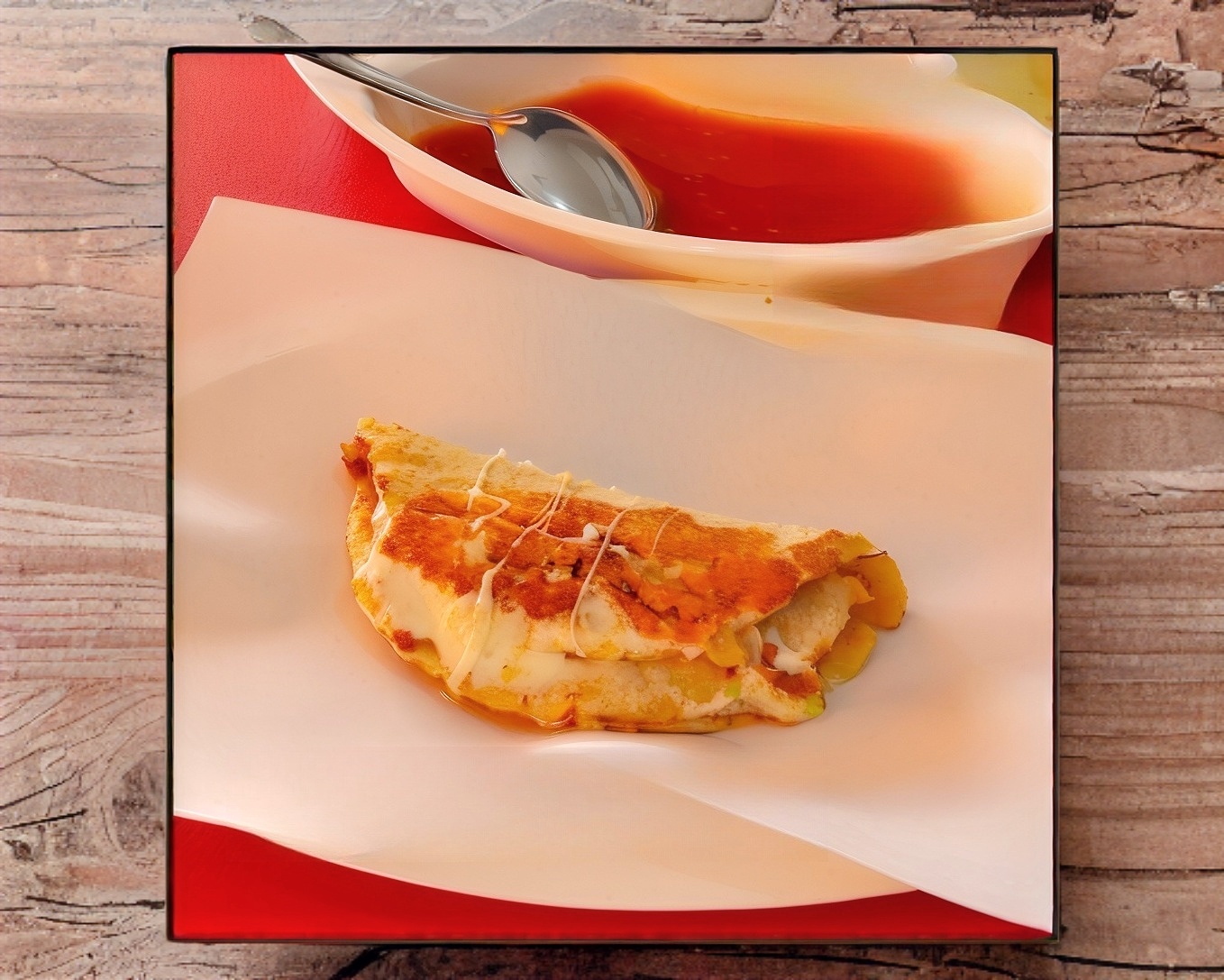 Quesadilla con queso y barbacoa 30 centímetros aprox. Dorada