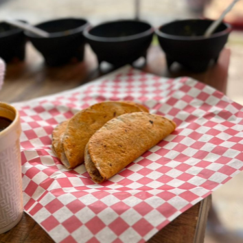 Ricos tacos con doble tortilla de comal hecha a mano y carne de barbacoa