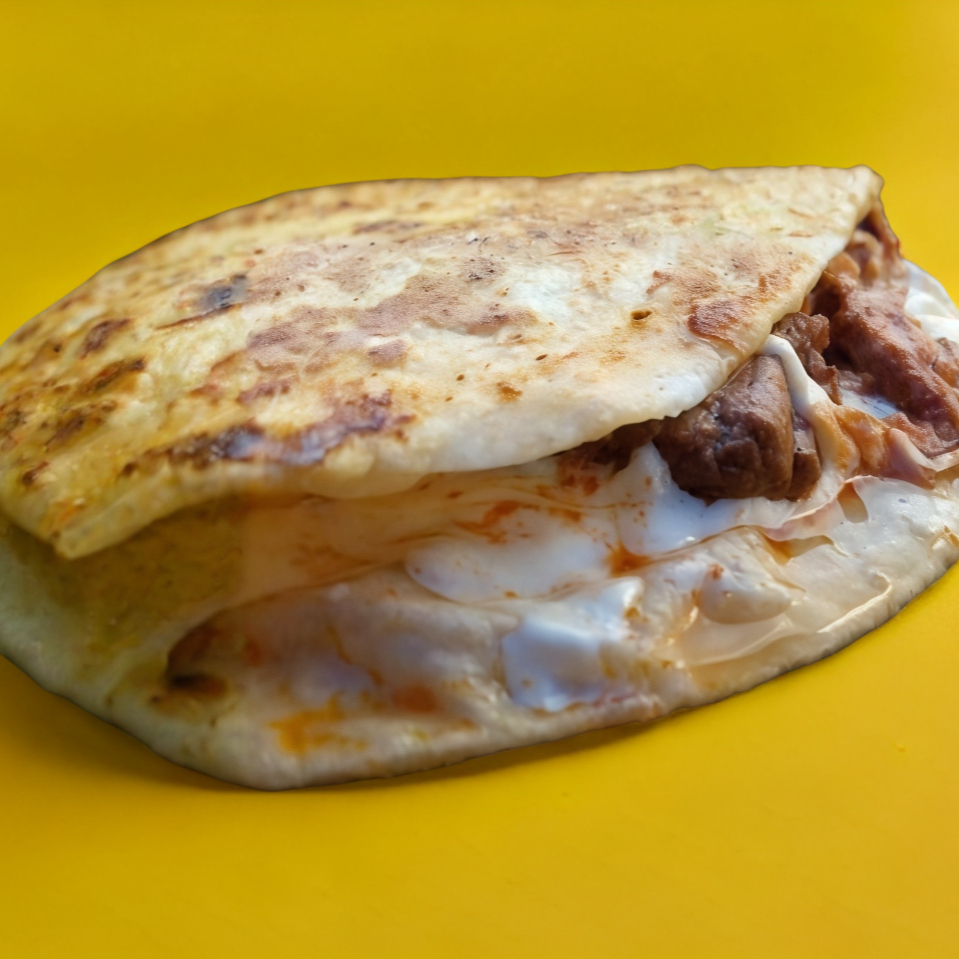 1 Tortilla de harina grande puede ser suave o dorada, elige tu estilo preferido, incluye queso asadero, carne de birria, cebolla, cilantro, salsas (amarilla y verde) y limones. Personal.