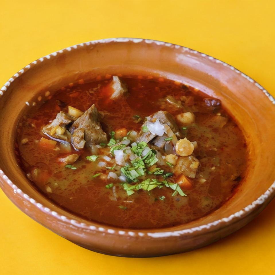 1/2 Kg De carne acompañado de consomé, salsas, cilantro, cebolla y limones.