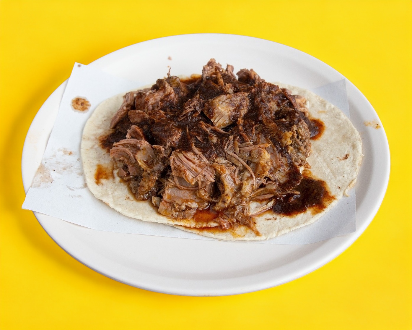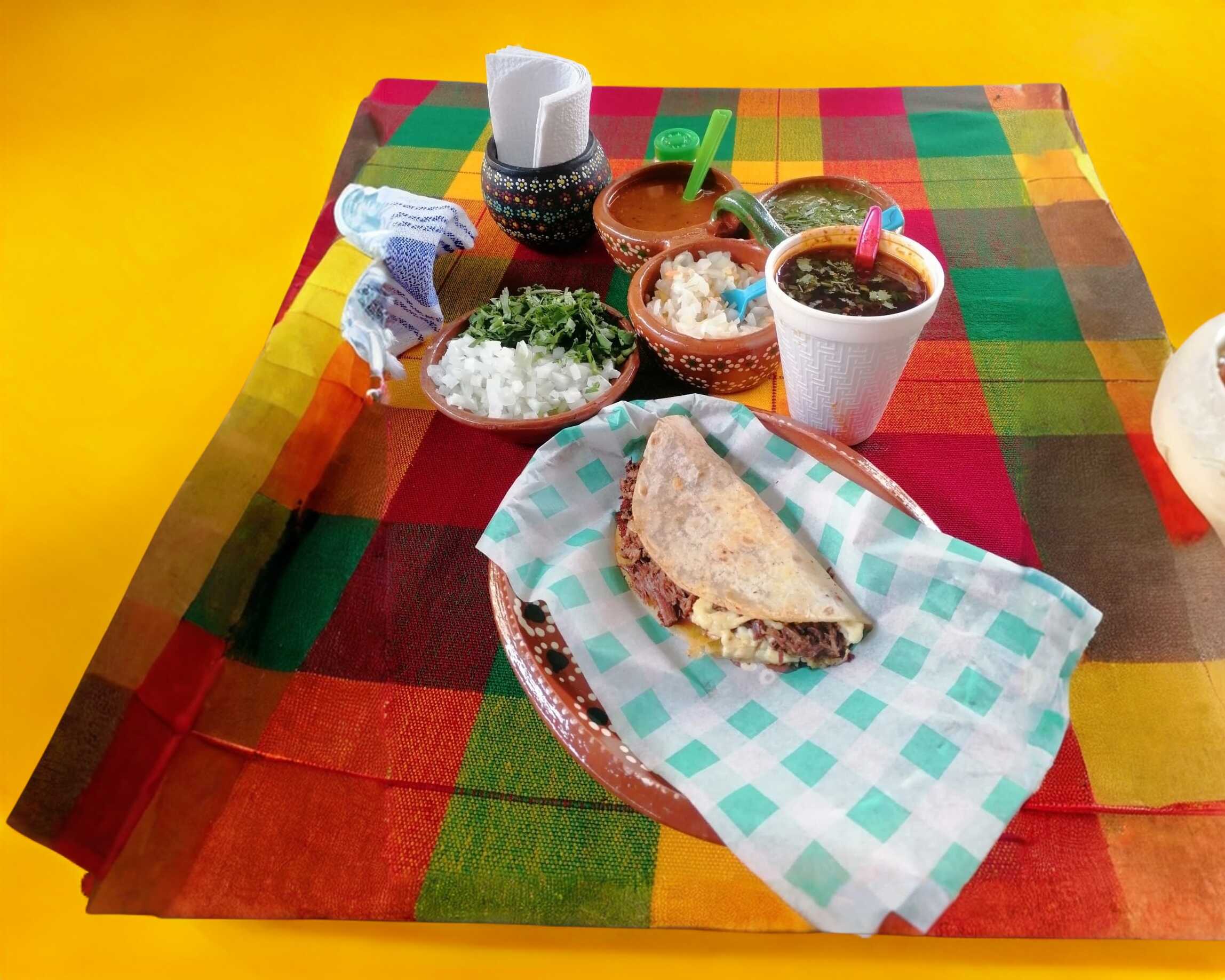 2 tortillas debajo, 200 grs de carne de su elección y se incluyen tortillas