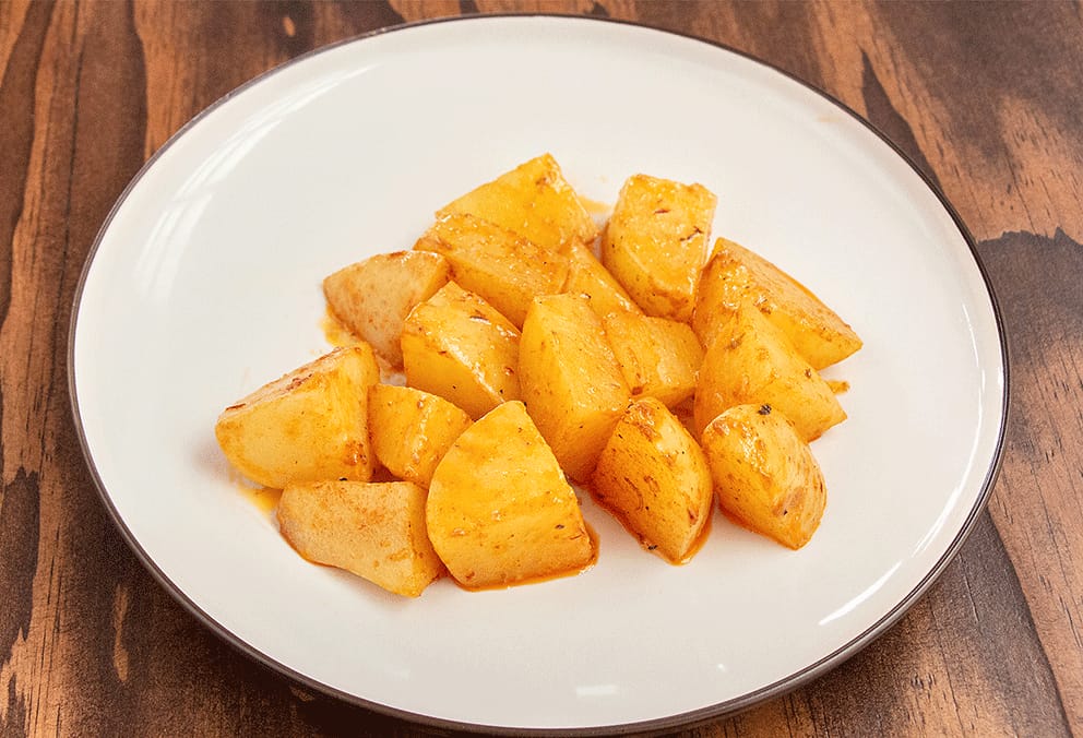 Cuadritos de papa cocida, aderezada con el chimichurri de la casa
