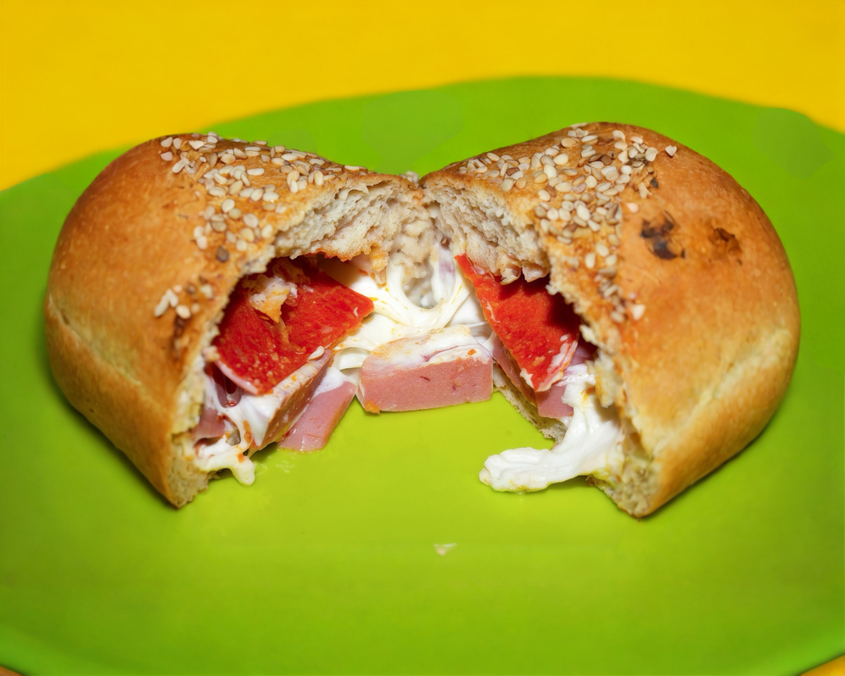 Queso crema y jamón de pavo.