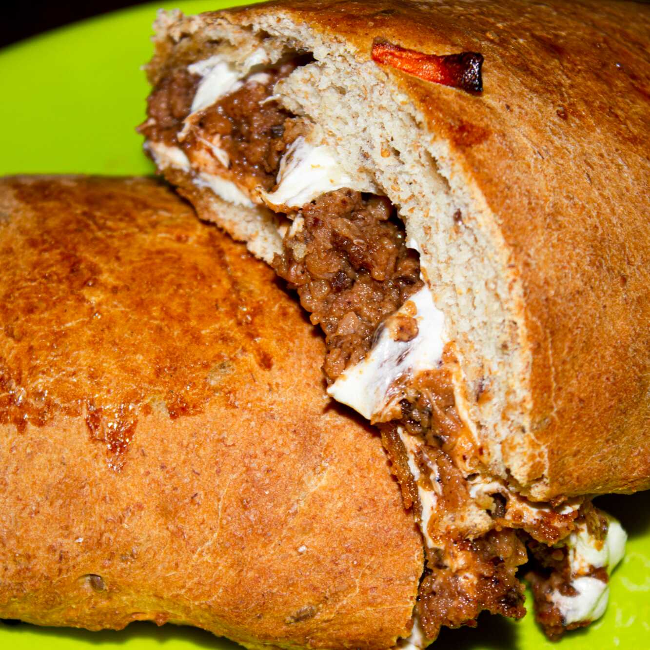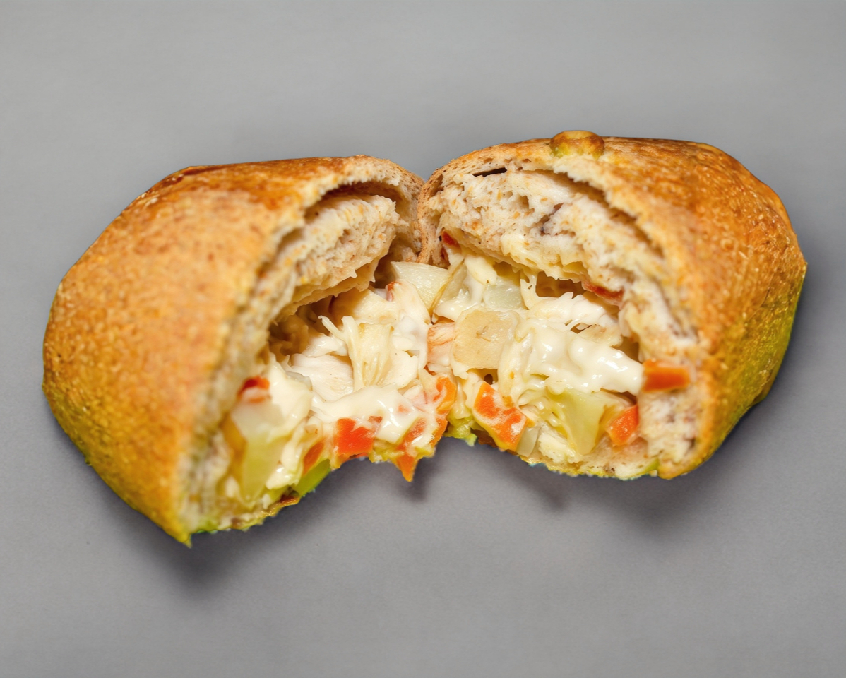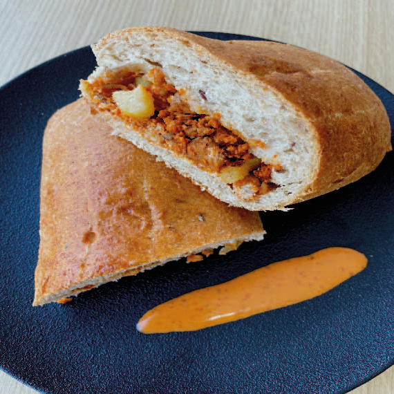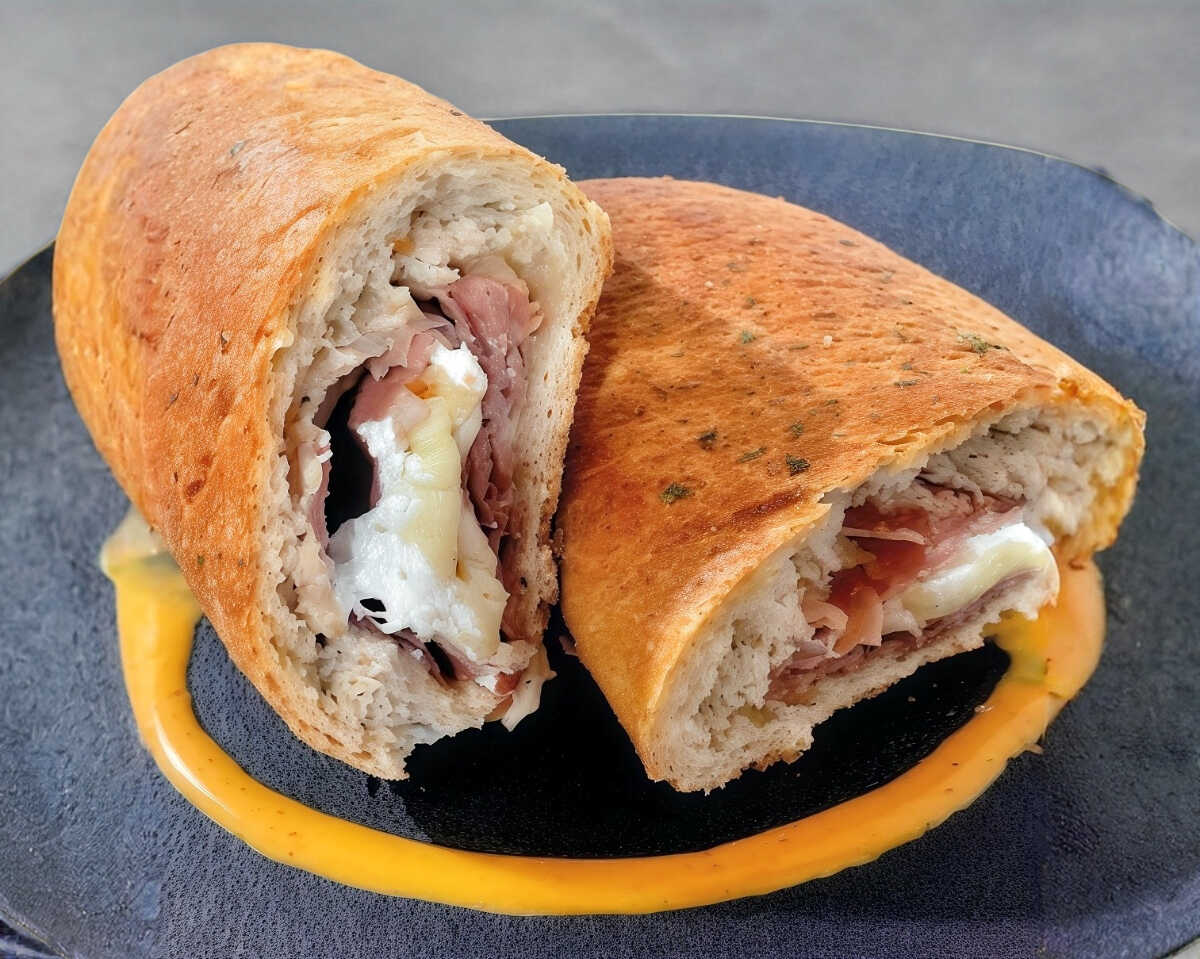 Pan Integral de 20 cm relleno de: Jamón Serrano, Queso Manchego y Queso Oaxaca.