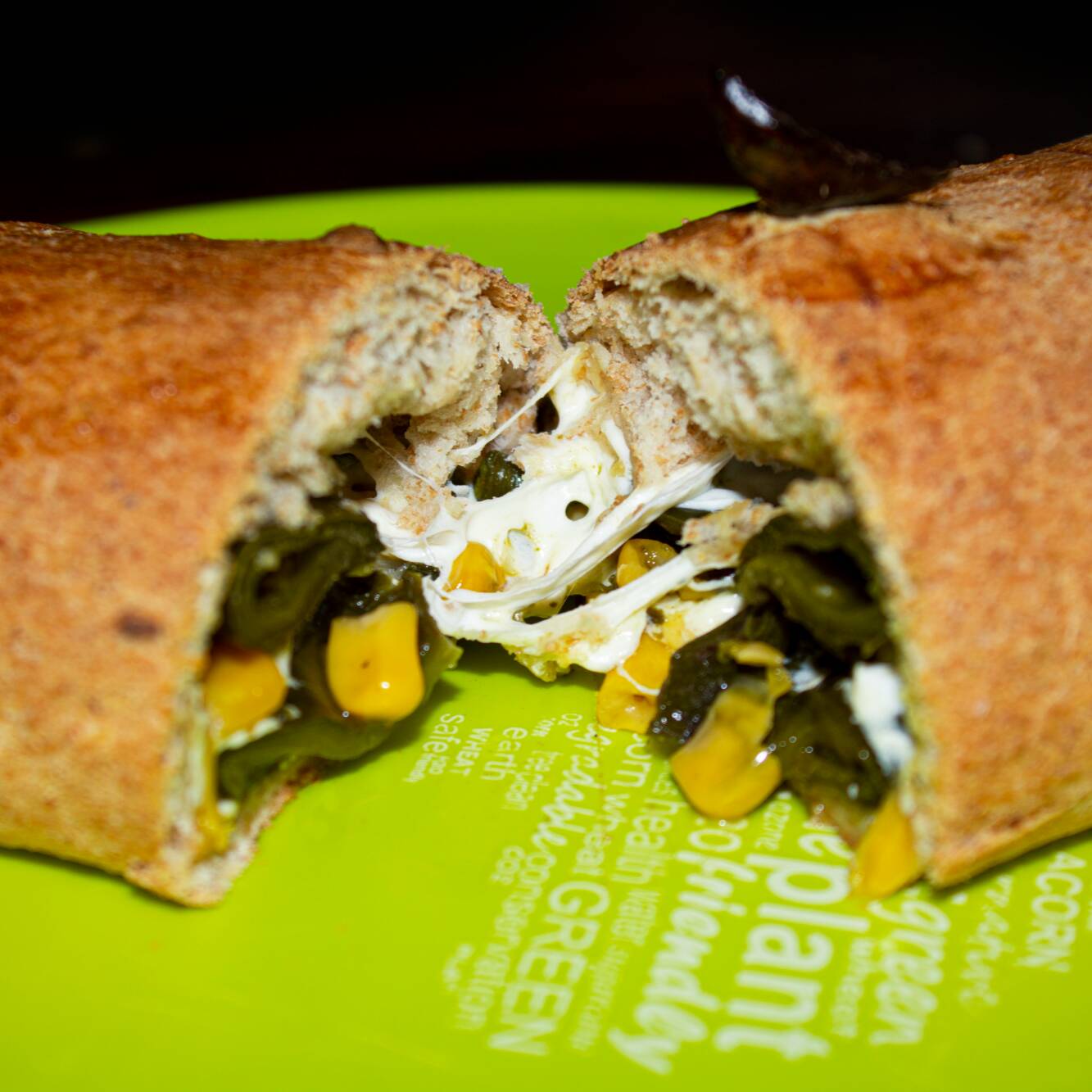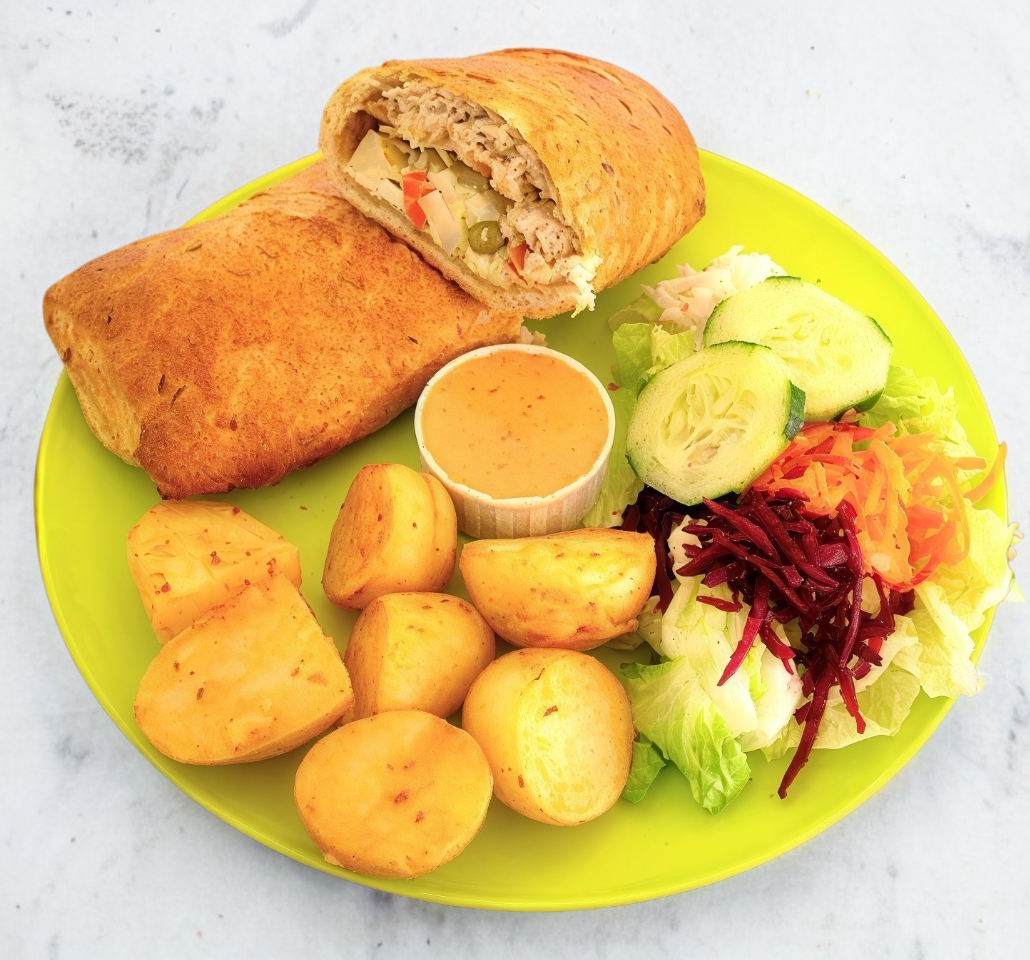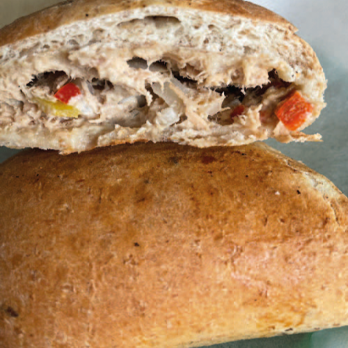 Pan Integral de 20 cm relleno de: Atún, Papa, Pimiento Morron, Mayonesa.