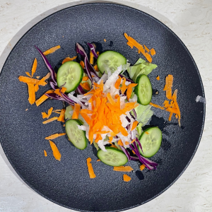 Lechuga, zanahoria, pepino, jícama y col morada.