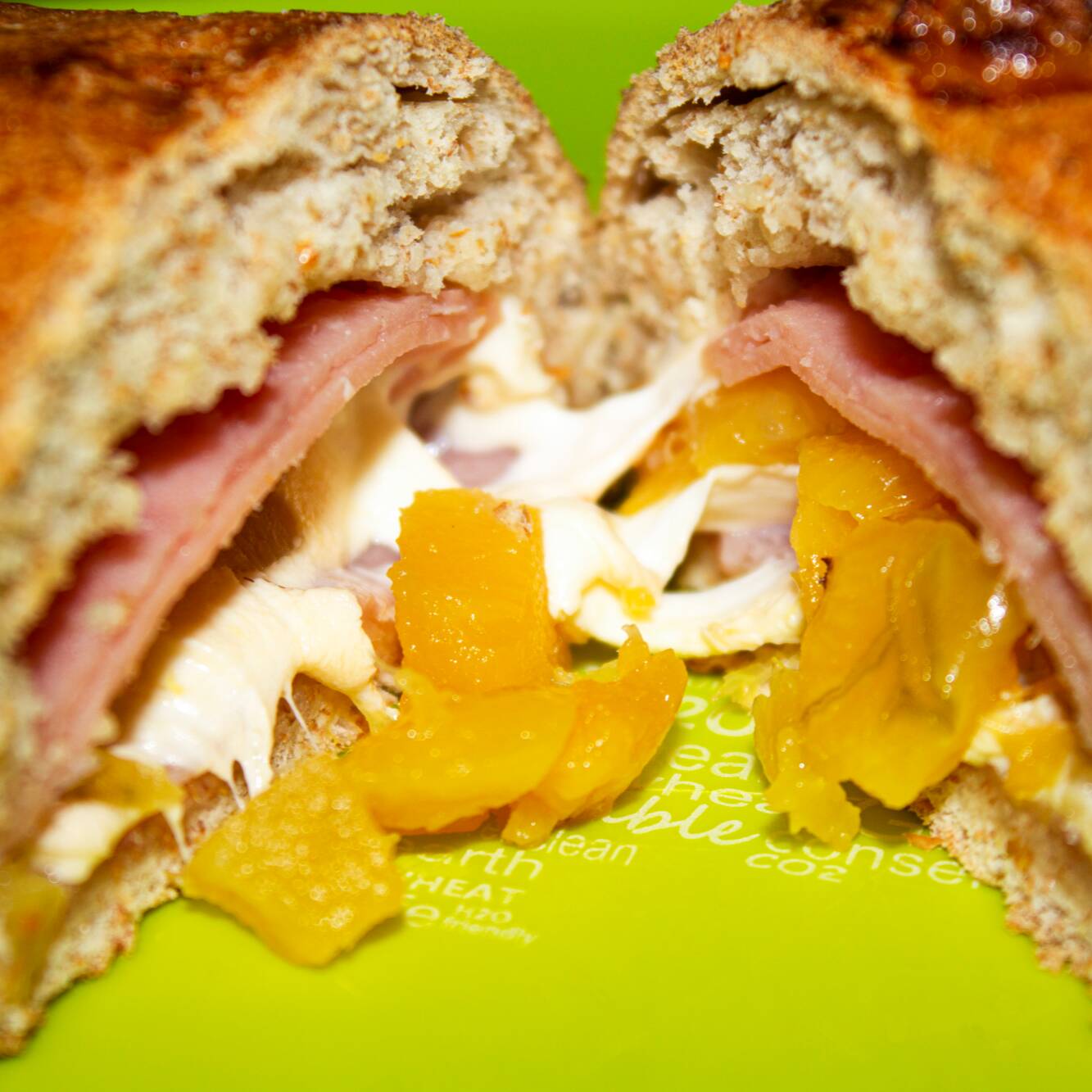 Jamón de pavo, piña y queso oaxaca.
