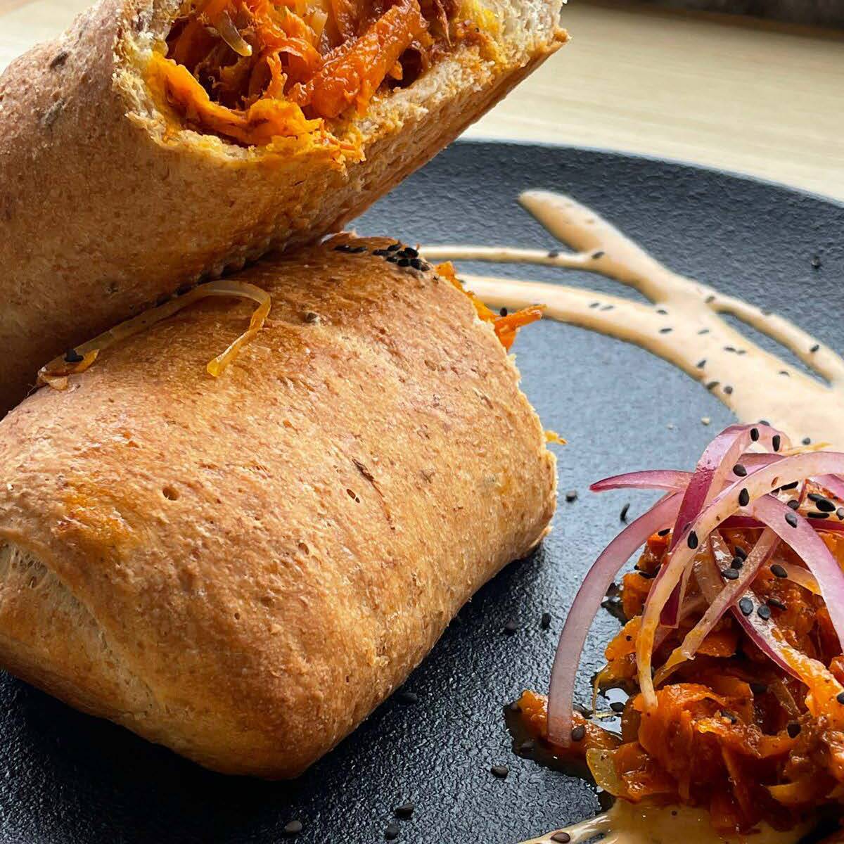 Pan integral casero de 20 centímetros: Cochinita pibil, cebolla morada