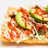 Chicharrón preparado con cueritos, repollo, aguacate, jitomate, limón, crema, mayonesa. Le ponemos el chicharrón a parte para que no haga feo.