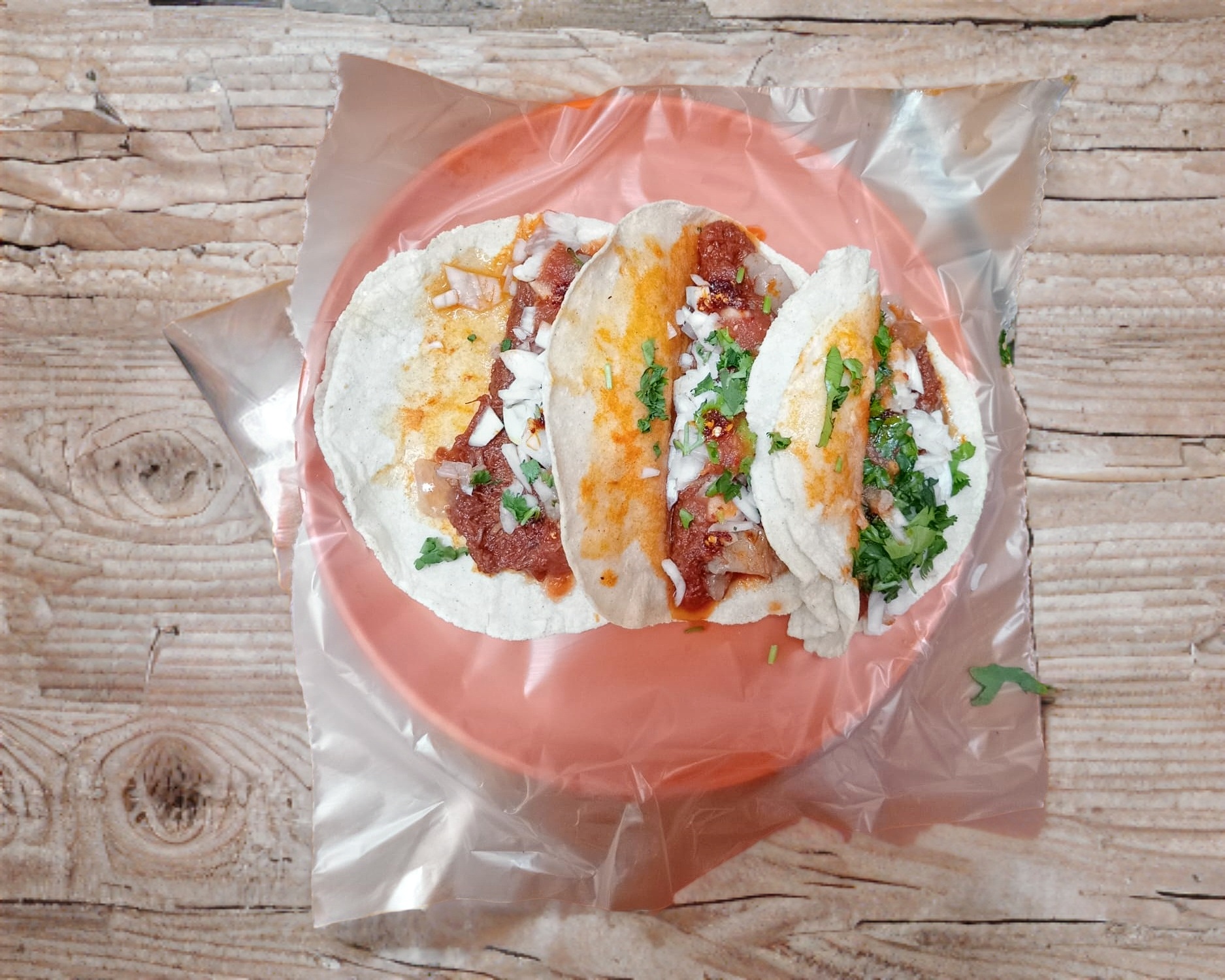 Taco de pancita con 2 tortillas recién hechas a mano. Verdura y salsa verde y/o roja.