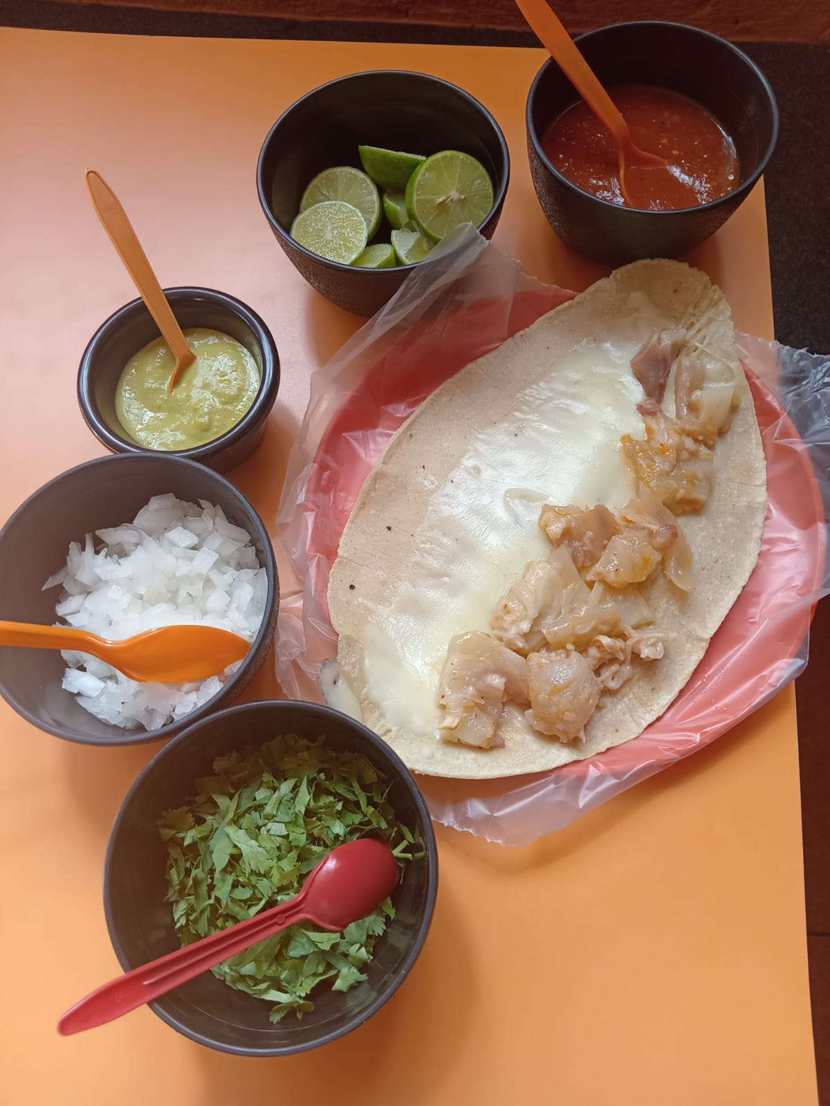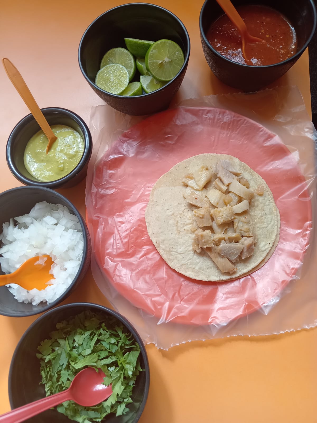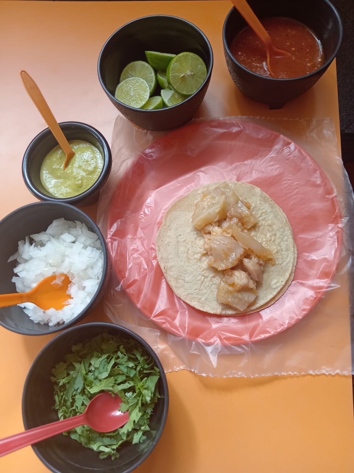 Pancita o surtido. Incluye tortillas, verdura y salsa verde y/o roja.
