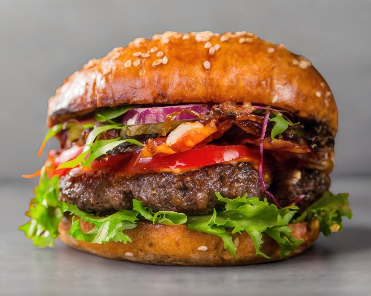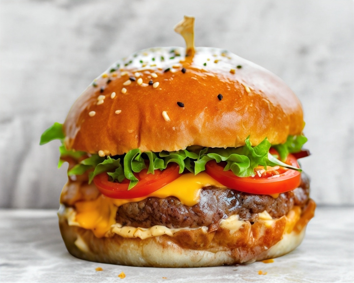 Hamburguesa Estilo Oklahoma, la bola de carne es aplastada en la plancha sobre finos aros de cebolla, la cual coce la carne y le da su característico sabor, ademas va acompañada de queso cheddar, pepinillos en pan de papa