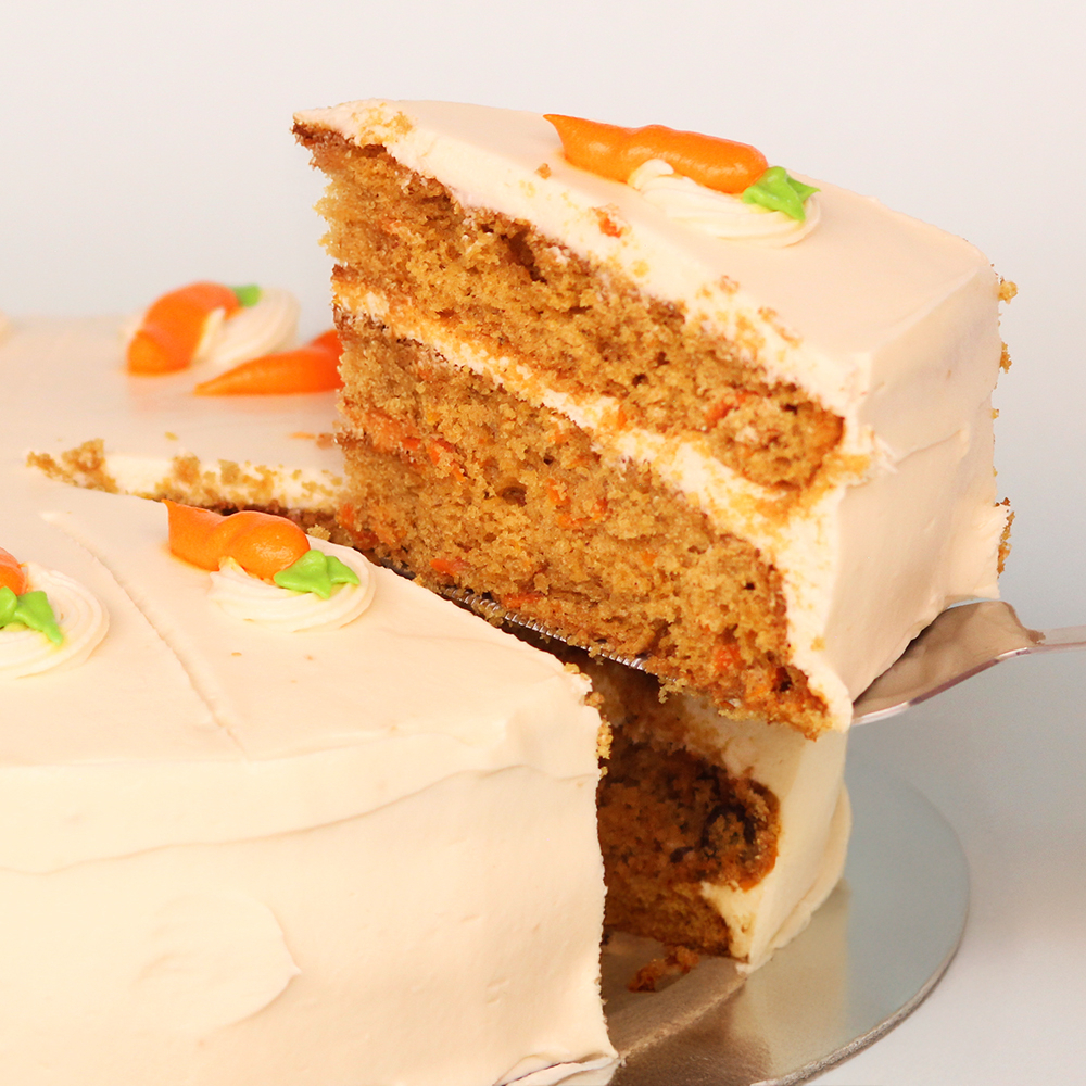 Deliciosa rebanada de nuestro icónico pastel de zanahoria.