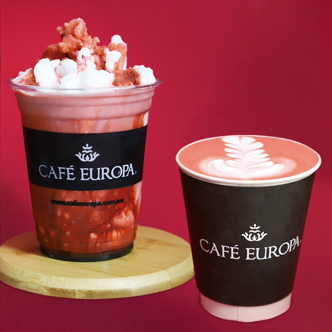 Infusión de fresa, kiwi, betabel y flor de jamaica. Caliente, frappé o en las rocas.