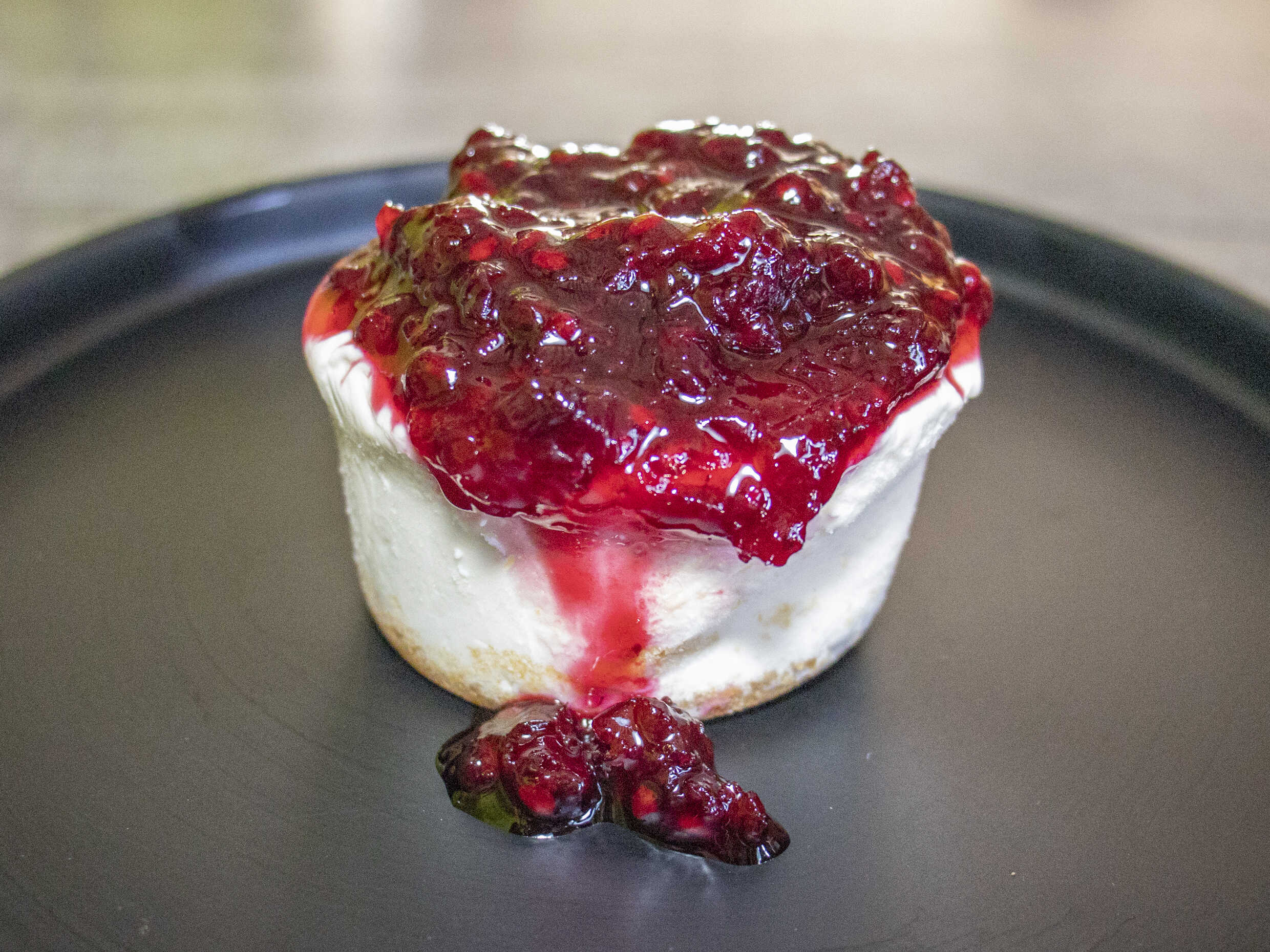Pay de queso helado con mermelada ya sea de fresa, zarzamora o cajeta.