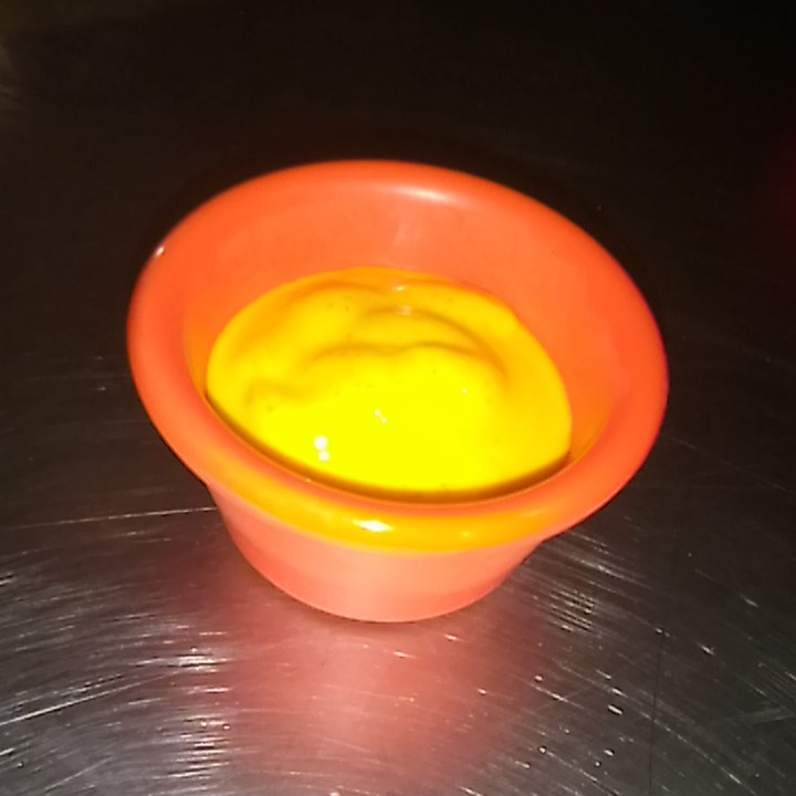 2 tacos de tortilla de maíz, camarón rebozado en tempura de cúrcuma, queso mozarela fundido, repollo y zanahoria rallada, pico de gallo y aderezo de soya. Guarnición de papas fritas en gajo.