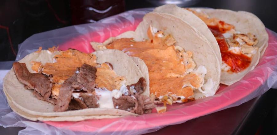 Taco de asada o chorizo con queso.