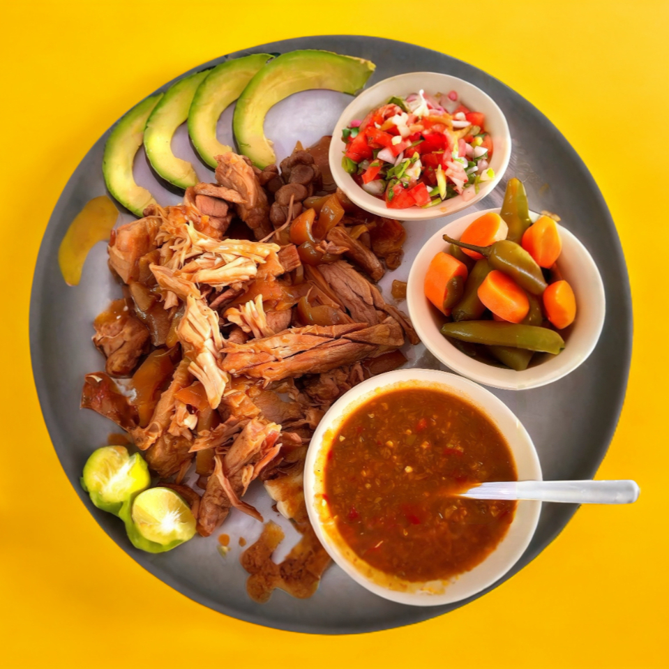 1/2kg Carnitas "tortillas, salsa, chiles"