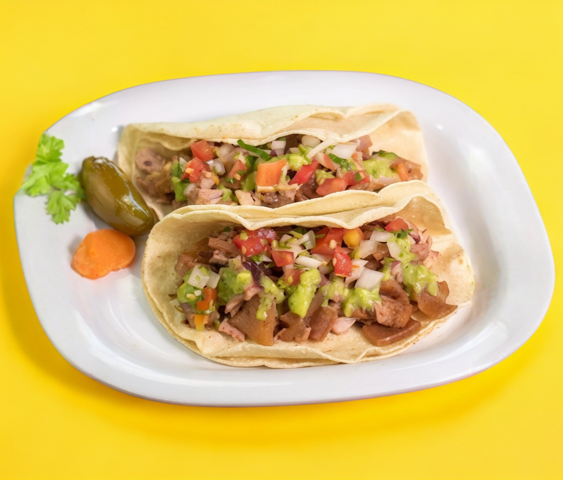 Dos deliciosos tacos de carnitas más una Coca Cola GRATIS de 400 ml.