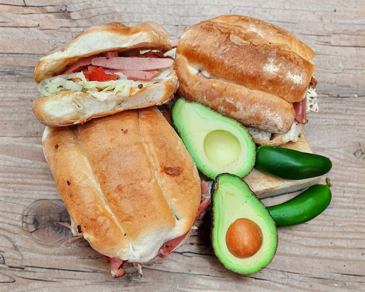 Hechas con pan de leña, aderezo, verduras frescas, salsa picante, crema y mezcla de proteínas; milanesa, jamón, salchicha y queso.