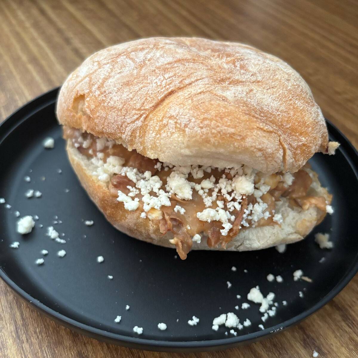 Bolillo de leña relleno de frijoles caseros con queso fresco