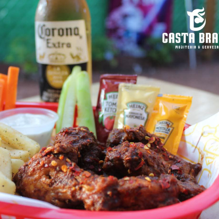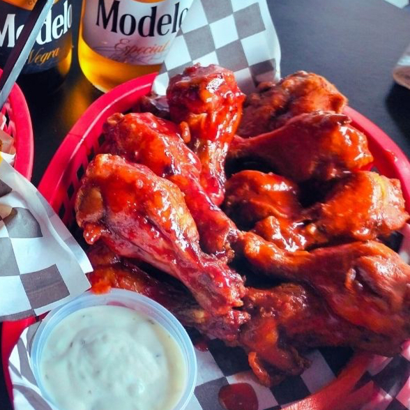 Alitas con tu salsa favorita acompañadas con vegetales y aderezo