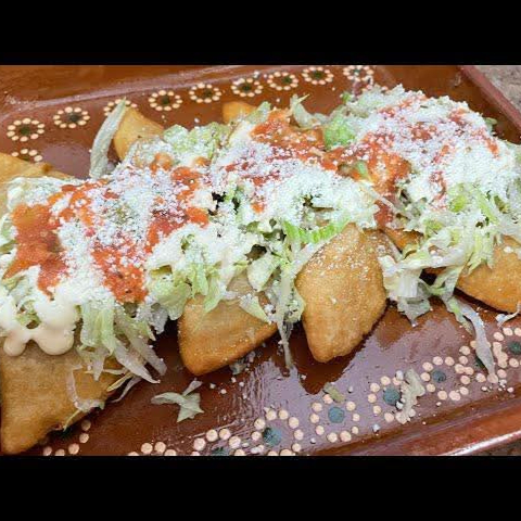 Quesadillas fritas 3 piezas de desebrada pollo picadillo chorizo jamón asada y bistec en chile negro