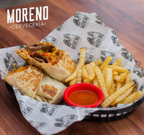 Crujientes totopos de maíz cubiertos con una generosa capa de queso fundido, carne sazonada al estilo Moreno, pico de gallo y jalapeños en rodajas que le dan el toque perfecto de picante