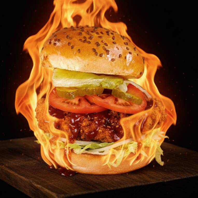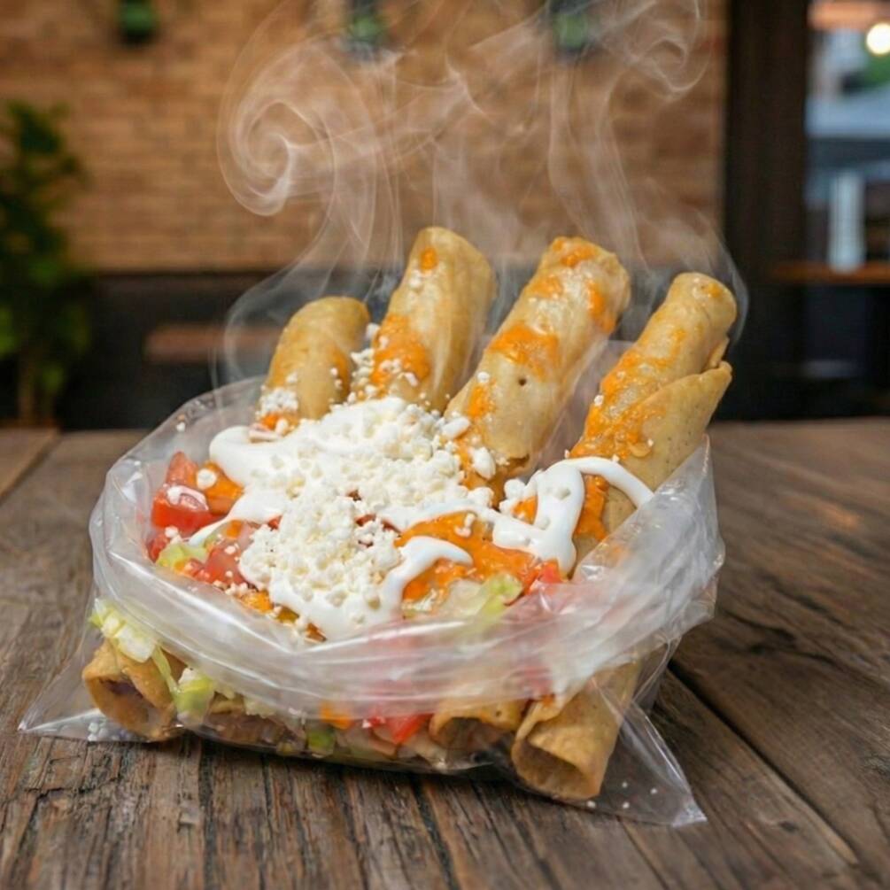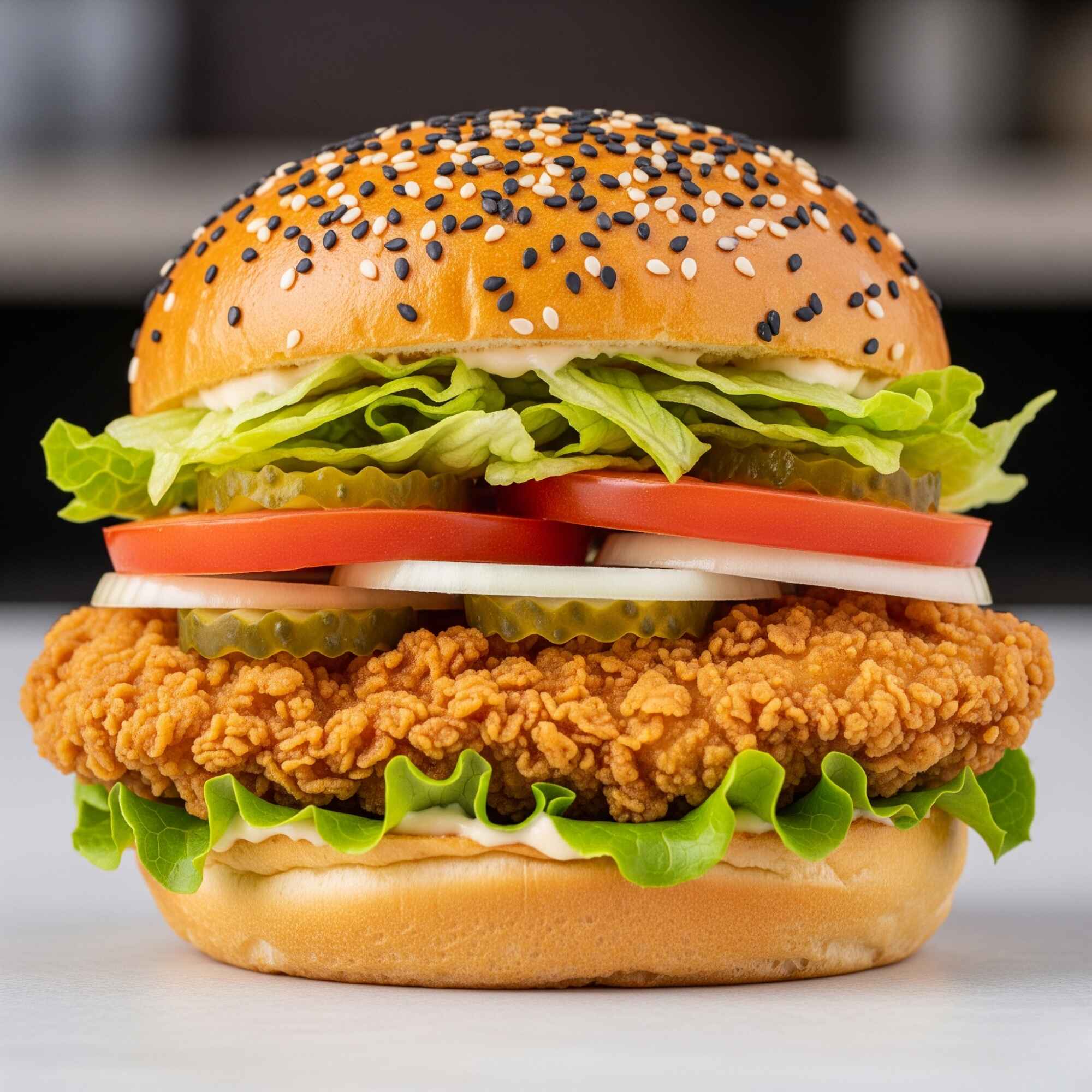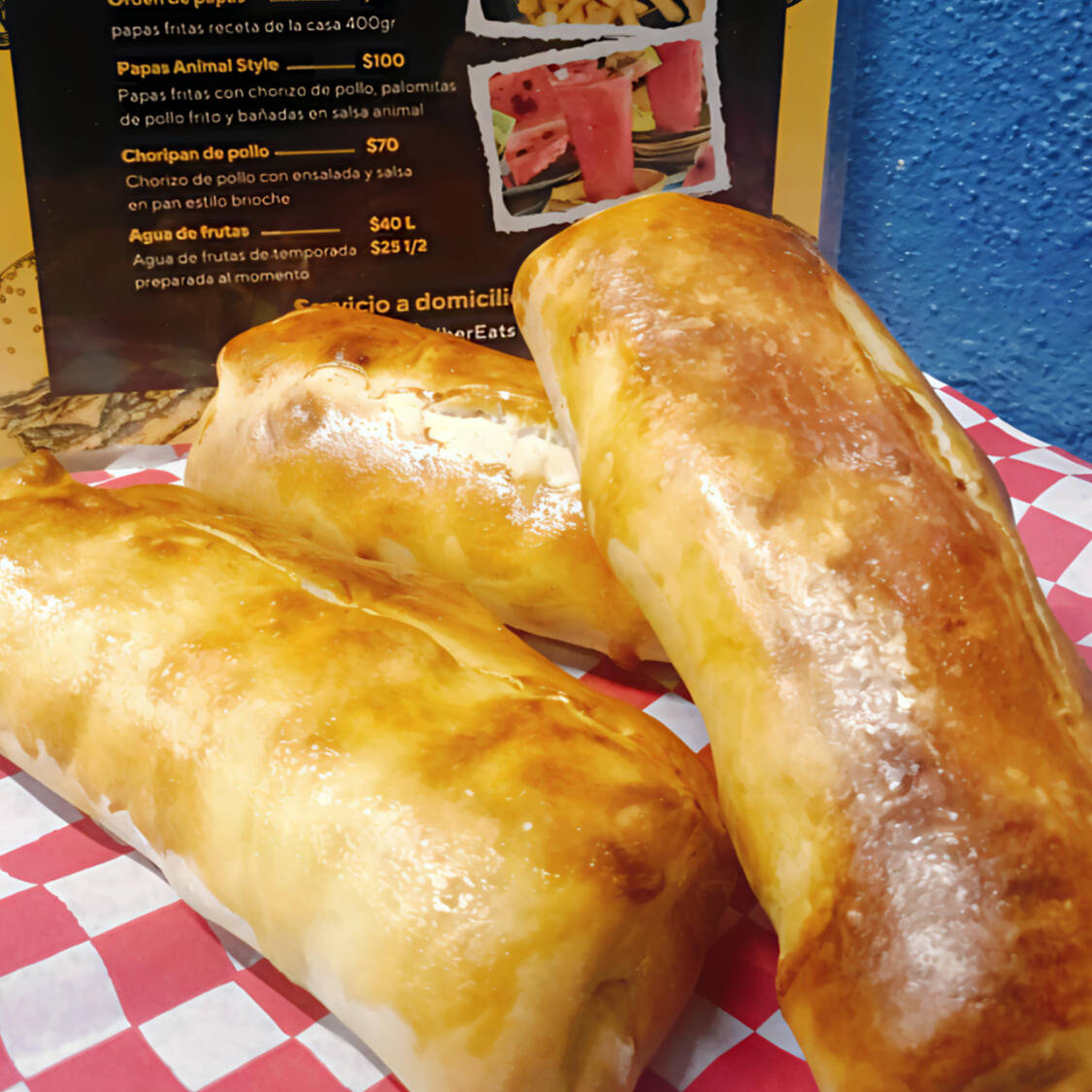 pollo frito, lechuga, jitomate, cebolla, pepinillos y liquidos