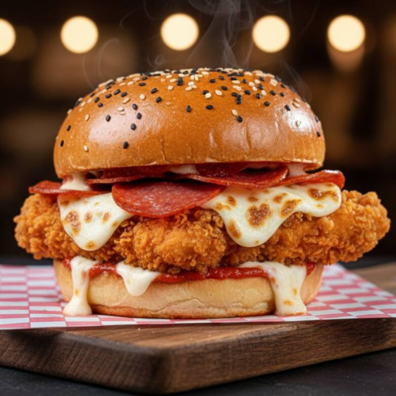 Pollo, salsa de pizza, pepperonni y mucho queso