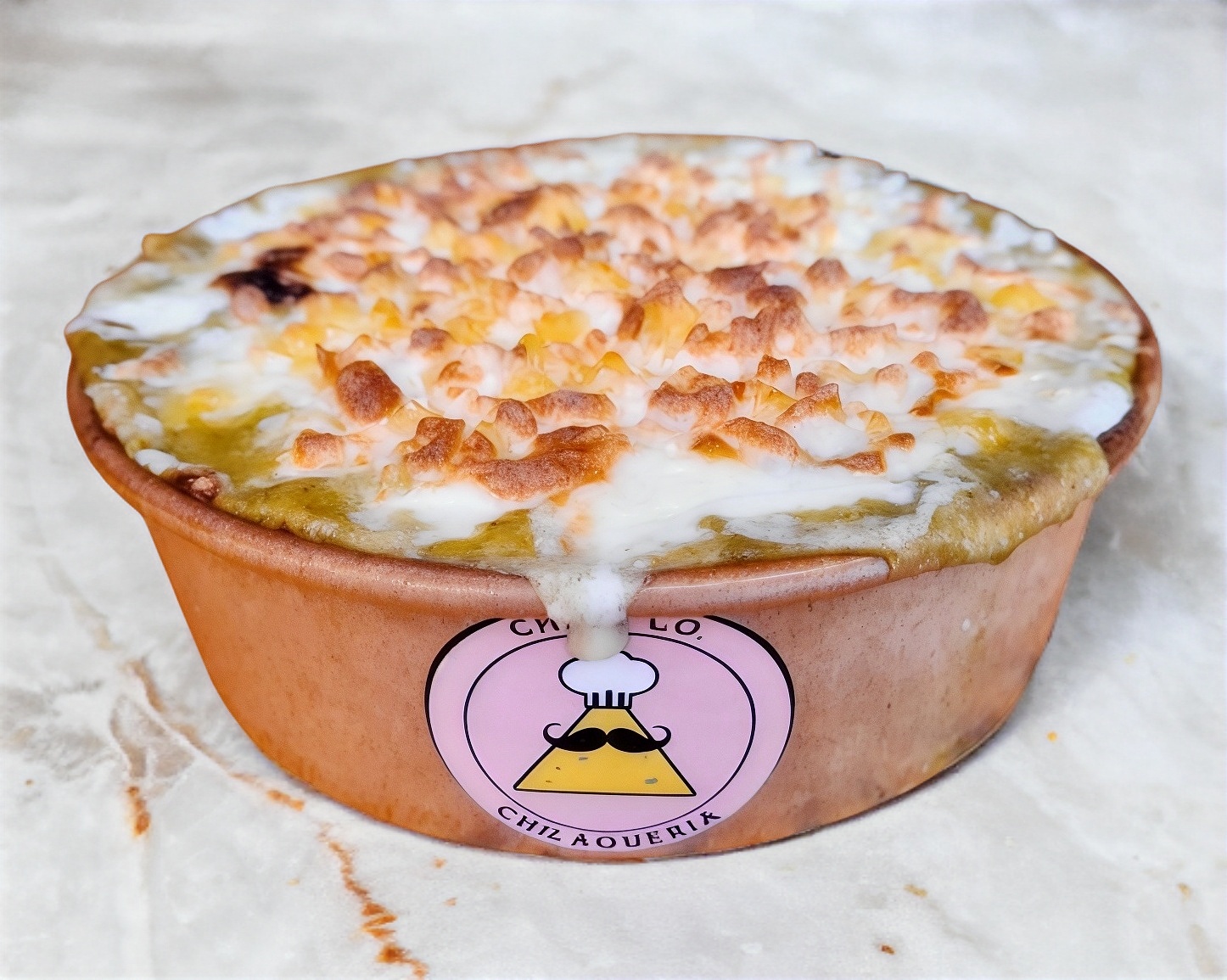 Deliciosos y crujientes topos multicolor guisados en la salsa de tu elección acompañados de crema, quesito fresco, cebolla y cilantro. (400g)