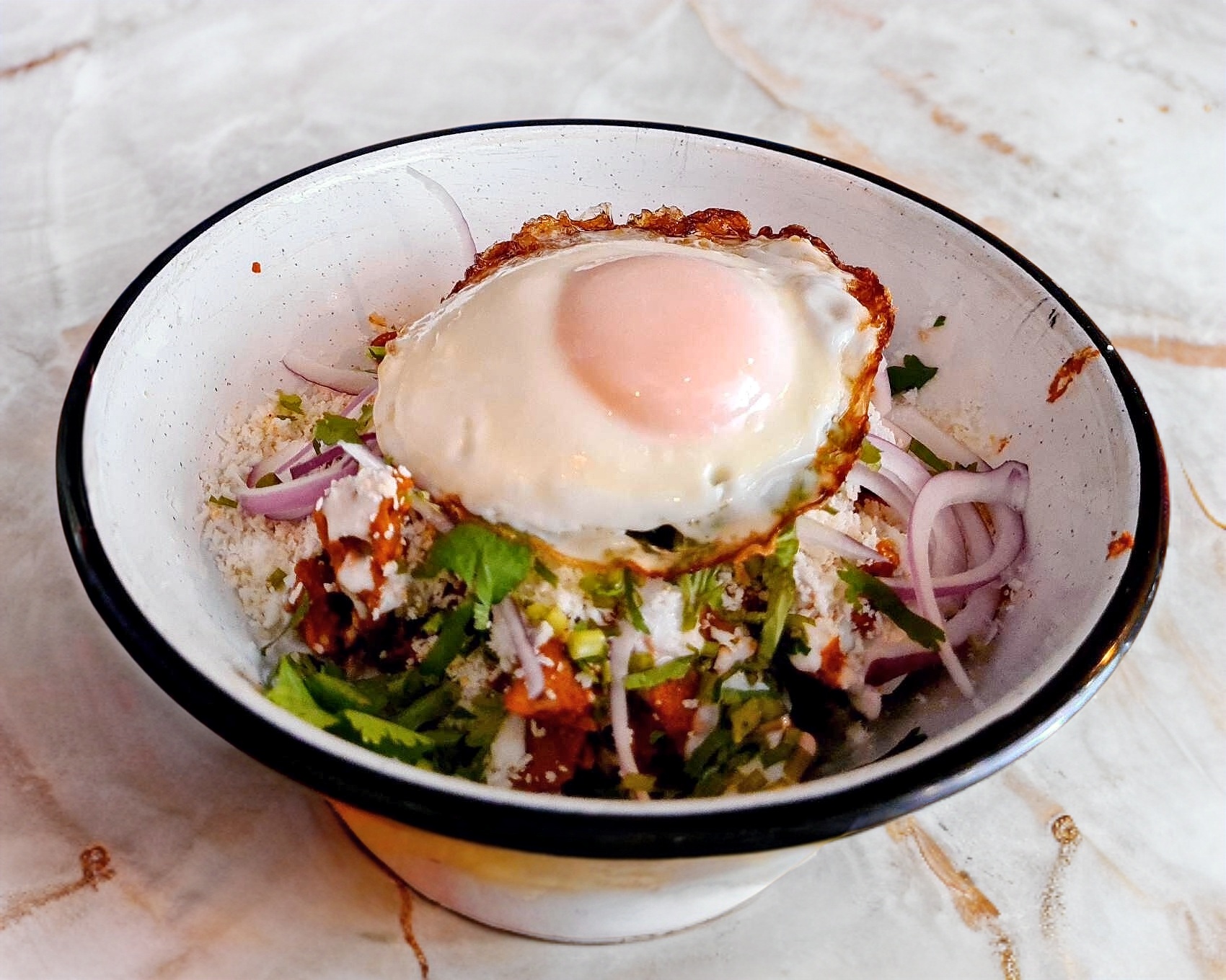 chilaquilitos preparados con la mexcla de salsas de tu eleccion acompañados de crema, queso, cebolla y cilantro y un huevito (estrellado o revuelto) al término que mas te guste