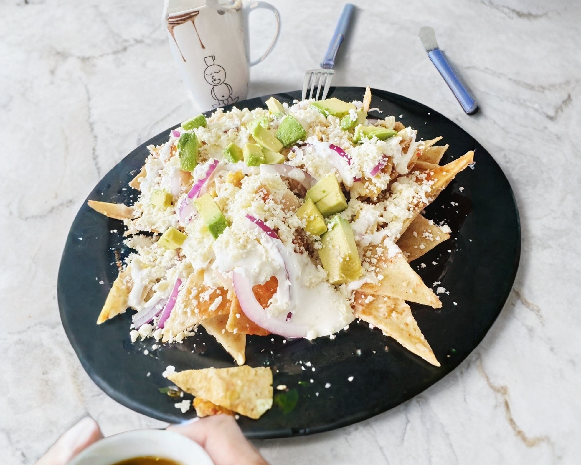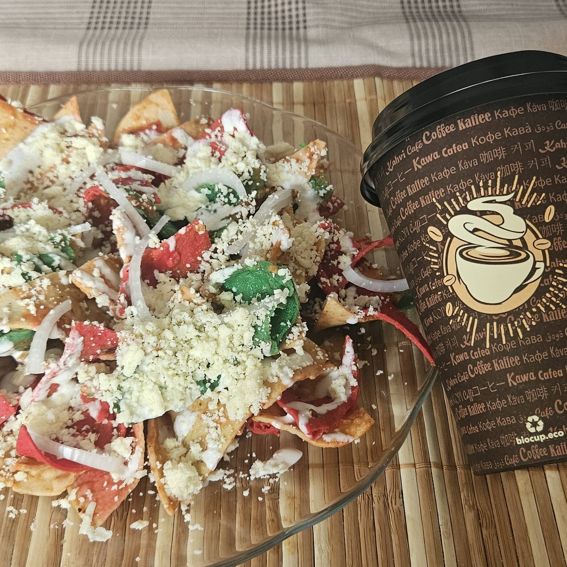 Chilaquiles picositos tradicionales acompañados de un café recien hecho de grano de Xalapa Veracruz