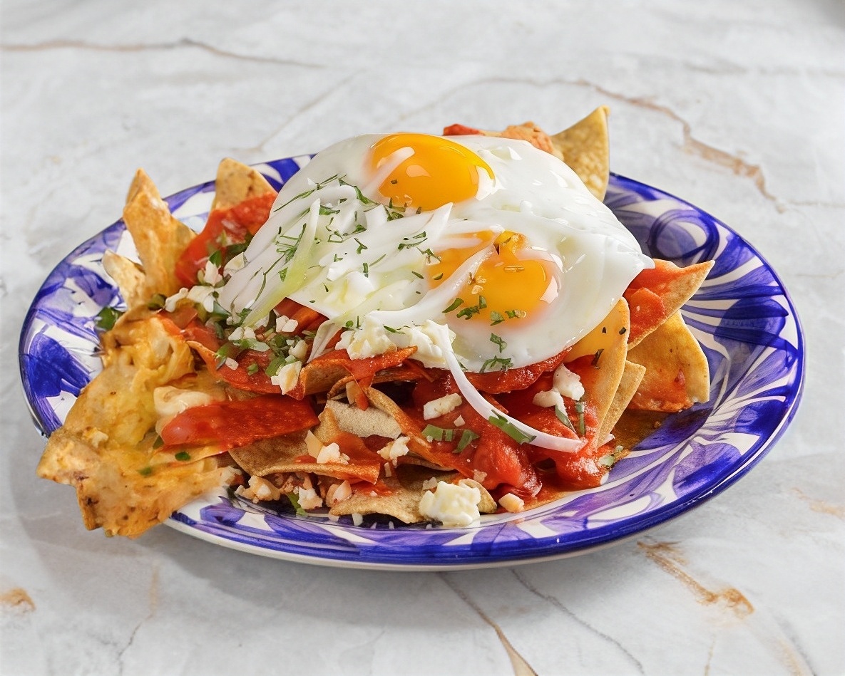 Chilaquiles picositos tradicionales, acompañados de una corona light combinada de tortilla de Nopal con tortilla de maíz