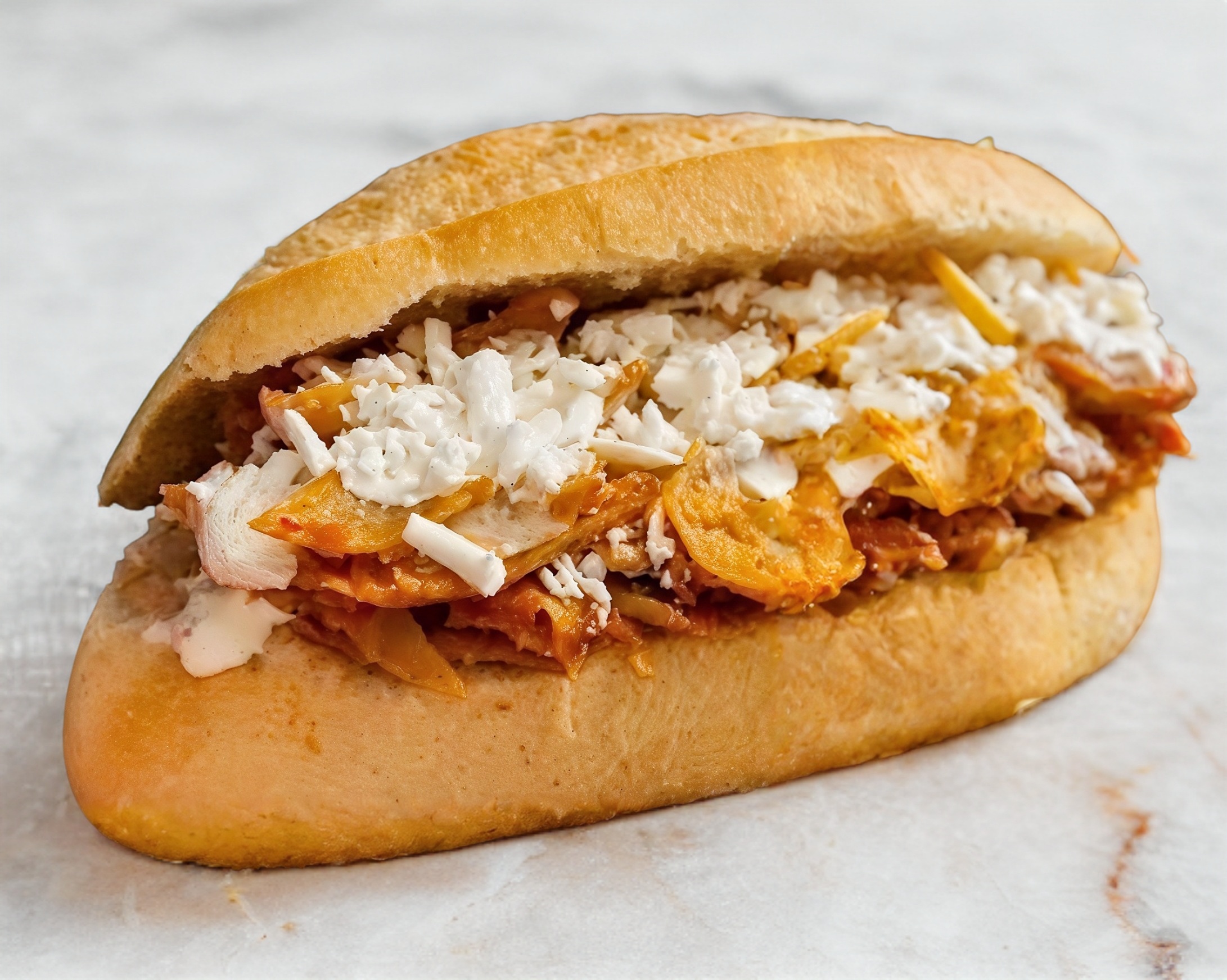 Chilaquiles picositos tradicionales en torta estilos mexico combinación de tortilla de maíz y tortilla de Nopal